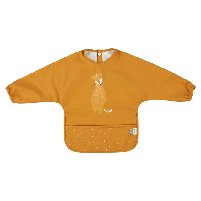 Fun and laughs at the table with your favorite animal friend! This cheerful bib comes with practical long sleeves and keeps your baby's clothes clean while enjoying a nice meal, drink, or snack. The handy pocket makes sure all spilled food is neatly caught, making much less of a mess. More good news: the fabric is waterproof and made from 100% recycled polyester! It is easy to wipe clean and saves you a lot of washing or cleaning time.