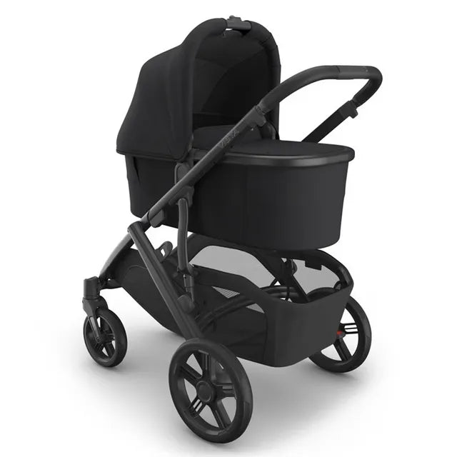 The UPPAbaby Vista V3 Stroller is designed for comfort, convenience, and versatility. The UPPAbaby Bassinet V3 Jake is also included, offering a safe and cozy space for newborns. The All-Weather Comfort Seat includes a Seasonal Seat Liner, which keeps your child warm in cooler weather or converts to mesh for breathability on warmer days. The Enhanced FlexRide Suspension and never-flat tires ensure a smooth ride whether strolling with one, two, or three children. The quick-to-secure harness system with a magnetic buckle and no-rethread harness offers safety and ease of use.