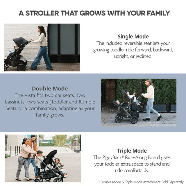- VERSATILE DESIGN: Converts from single to double to triple with 30+ configurations, supporting up to 3 kids with UPPAbaby RumbleSeat and PiggyBack attachments (sold separately).