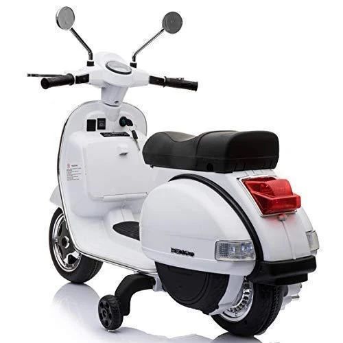 Vespa Kids Power Riding Motorbike with Side Support Wheels, Lights & Music, Rechargeable Bike, Sit and Ride Scooty 12V