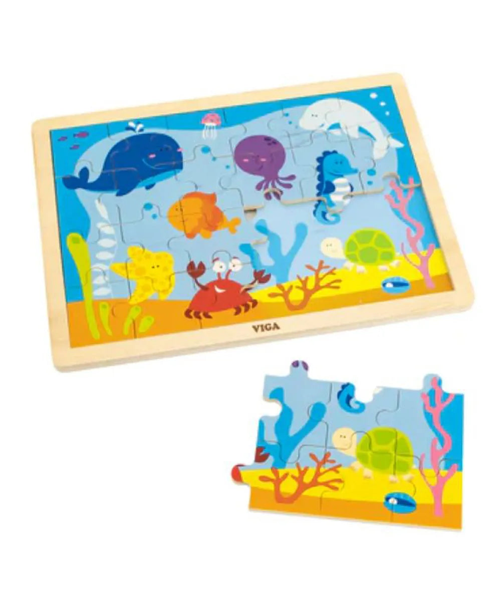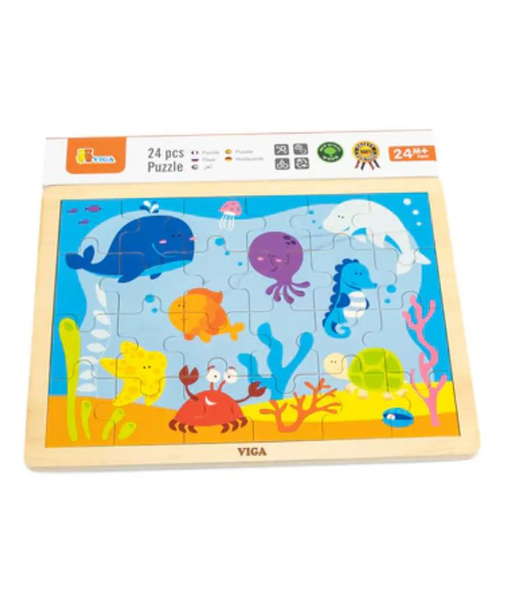 A classic flat puzzle including 24 pieces that encourages memory, hand-eye, fine motor, and creative expression skills. Interlock the pieces following the hint from the nice same pattern underneath.