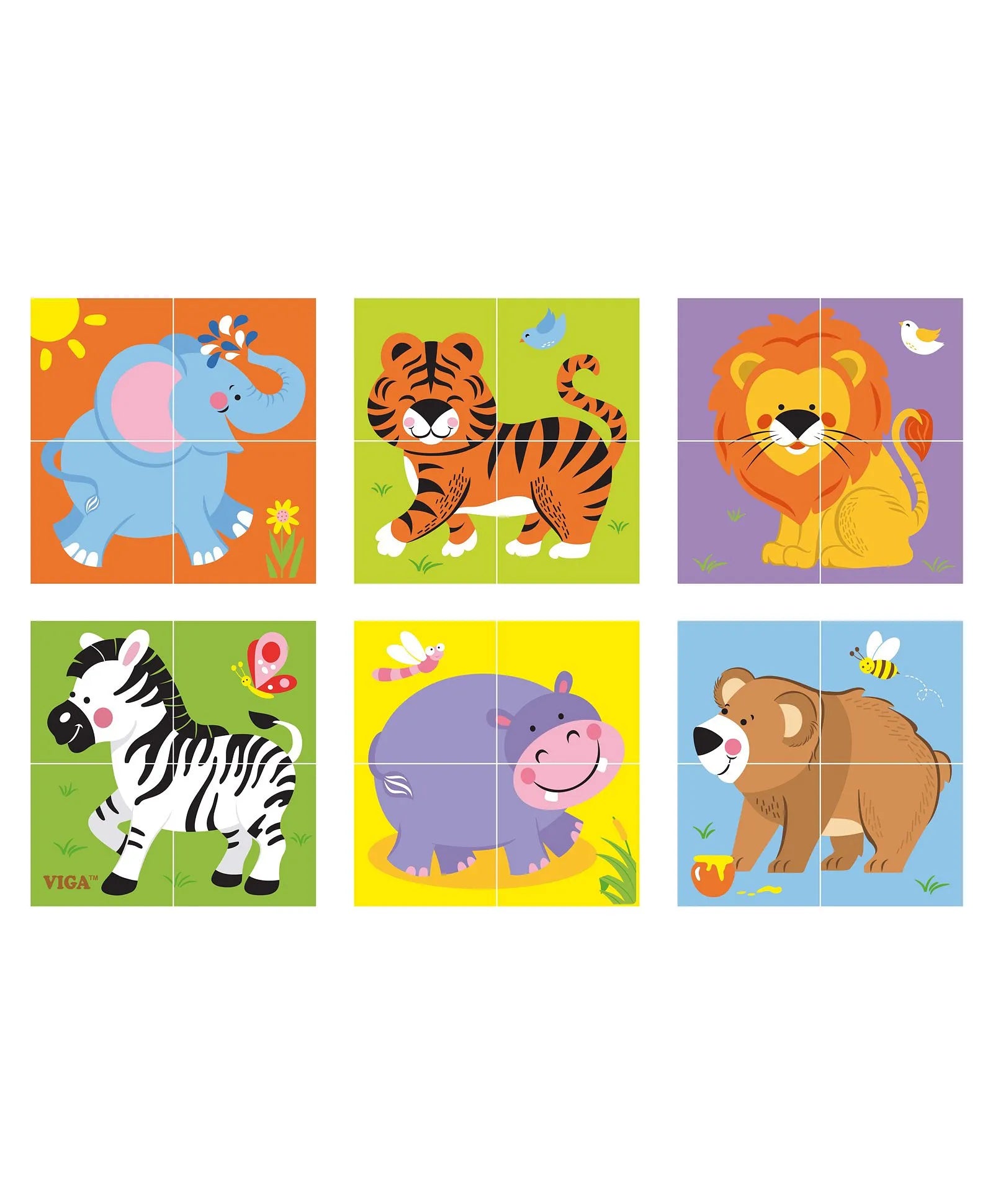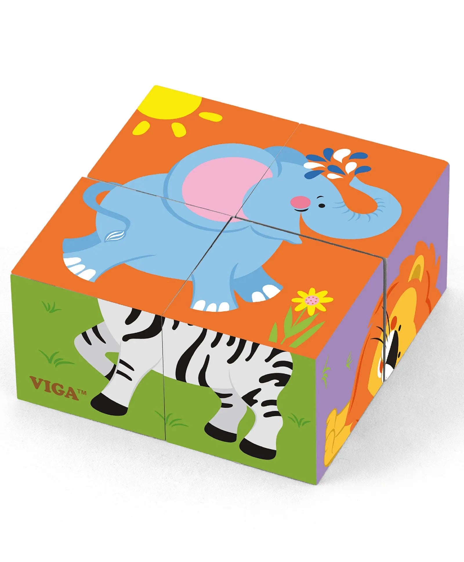 Six puzzles in one! Using 4 solid wooden blocks can make 6 different nice pictures. Great for the little ones to enjoy surprise and success.