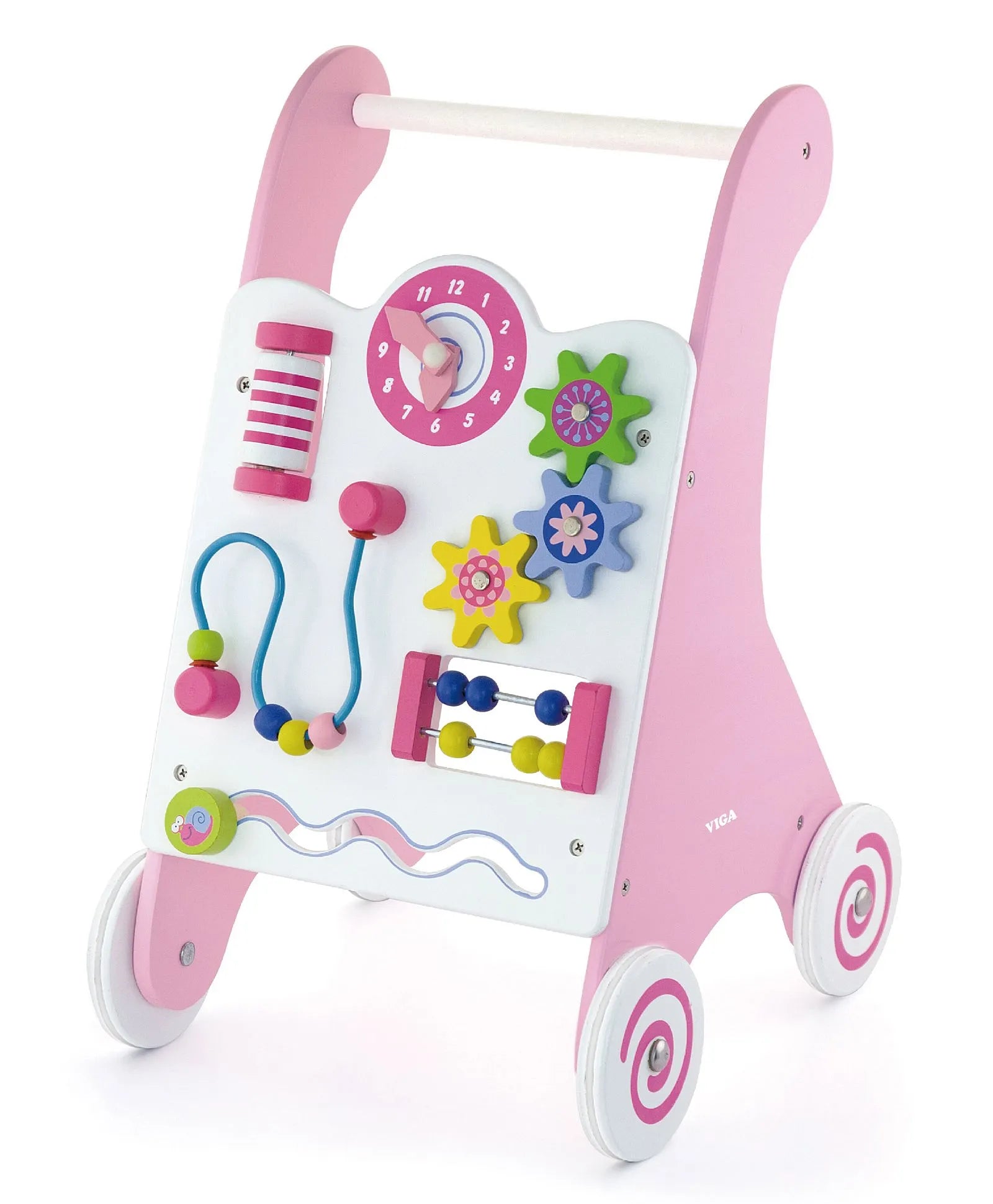 VIGA Activity Baby Walker is a great way for children to develop their fine motor skills, problem-solving skills and hand-eye coordination. They can use the walker to move around, they can use the farm animal track and trace to practice their tracing skills, they can use the wire beads to practice their threading skills, they can use the turntable windmill to practice their turning skills, they can use the sun/moon turning plate to practice their cause and effect skills, they can use the gears to practice their understanding of how gears work and they can use the track and trace blocks to practice their problem-solving skills.
