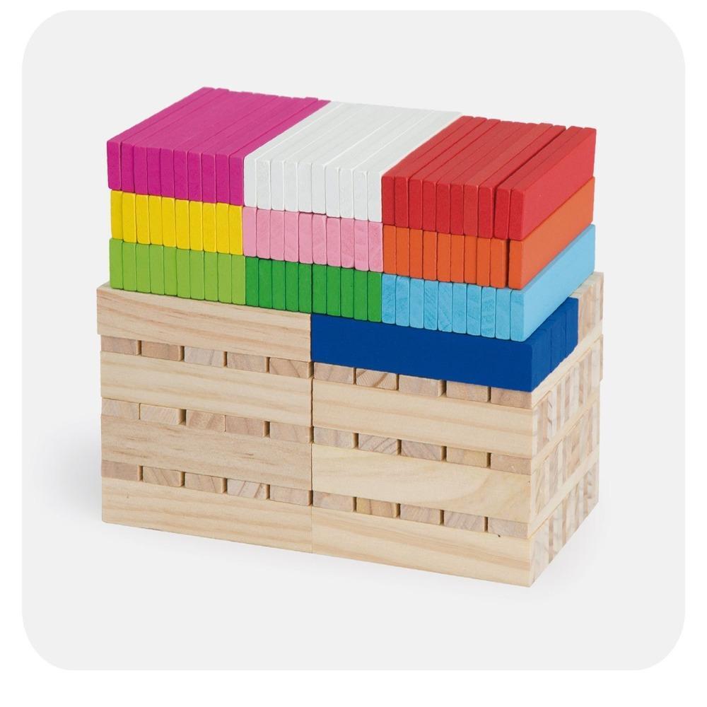 - This 250 pcs. wooden block set includs 150 pcs. naturel wood blocks and 100 pcs. colorful blocks of 10 different colors.