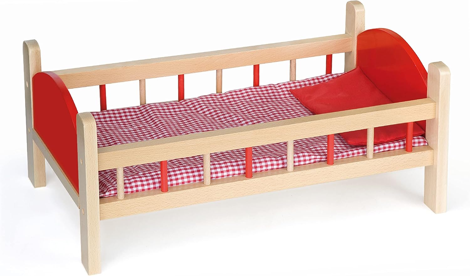 VIGA Wooden Doll Bed toy is a lovely sturdy doll bed with high quality beech wood frame. perfect cot for any doll or cuddly toy. Pillow and pad included. Your little one will surely love this wooden bed for their doll. Comes with a mattress and pillow. Develop children imagination and creativity skills. Fun way for children to learn about taking care of others.