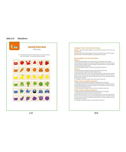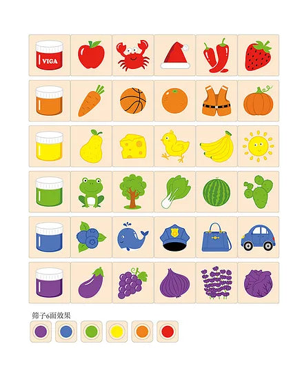 A wooden puzzle, thanks to which the little one will learn to recognize colors . The fun is to distinguish and match the pictures to the appropriate colors . Thanks to the pictures, the child not only gets to know colors and learns to name them, but also learns what objects, plants or animals have a particular color. In the attached manual, we propose variants for one person as well as for several people and at different levels of difficulty.