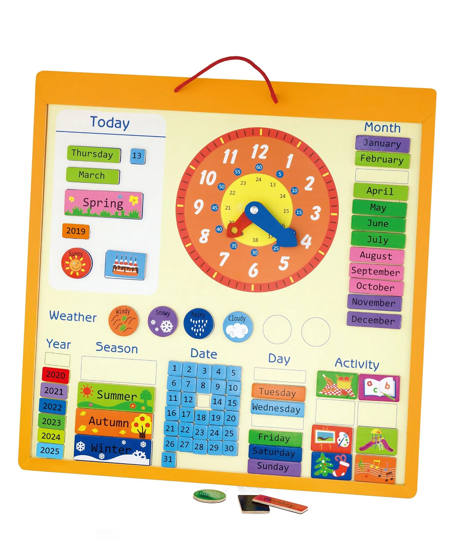 This Viga's game includes 75 magnetic pieces for children teaches about time, dates, days, months, seasons and weathers.- Perfect to hang this educational, magnetic calendar at home or school. The kids will have a good time play this and can be a favourite soon.
