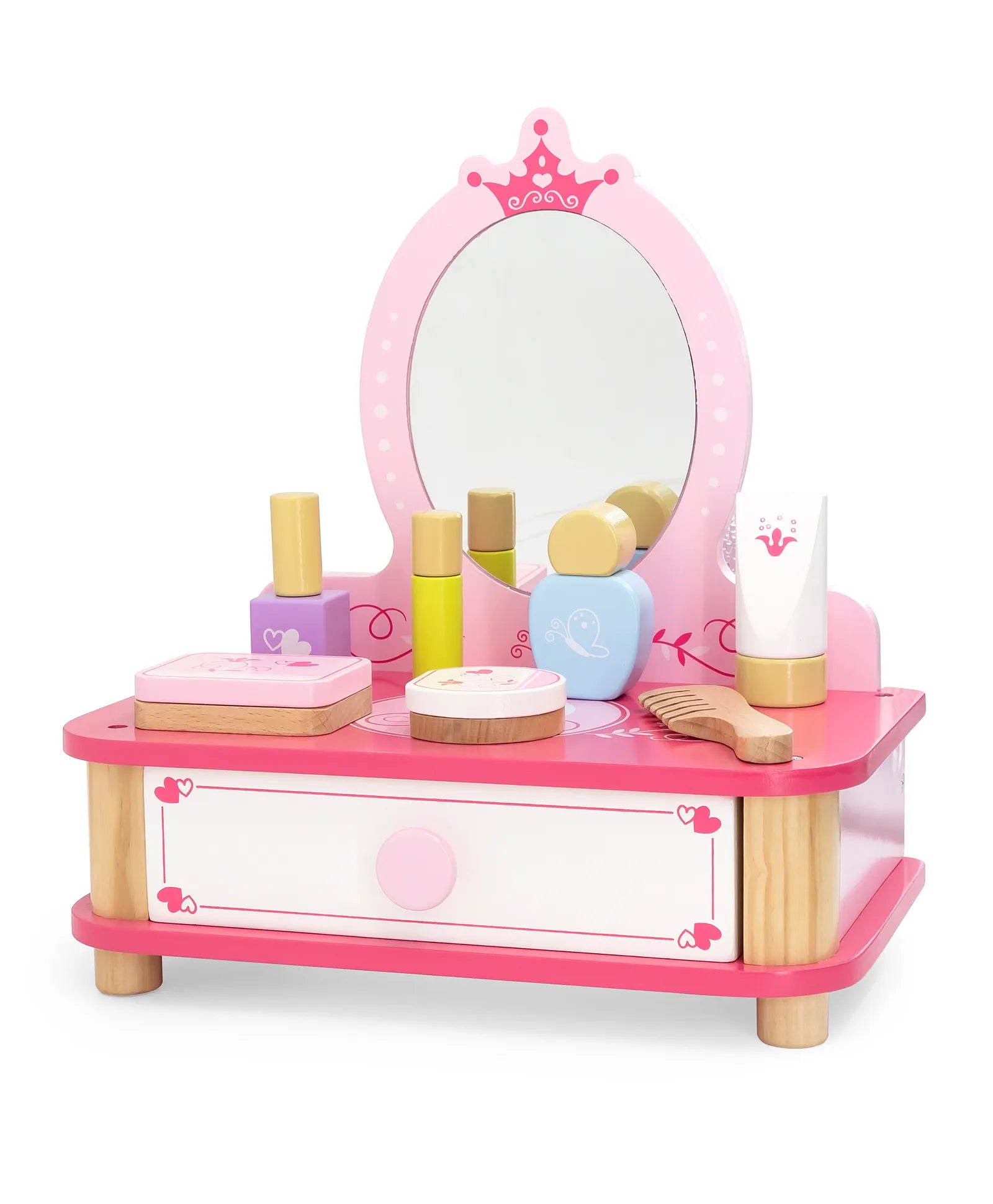 - Includes a wooden dressing table, wooden make-up and wooden comb.