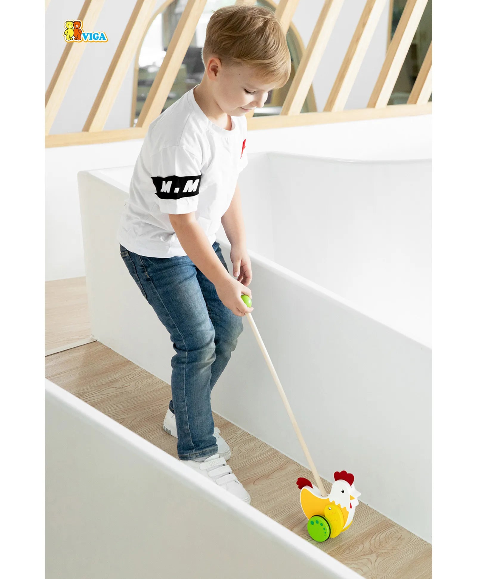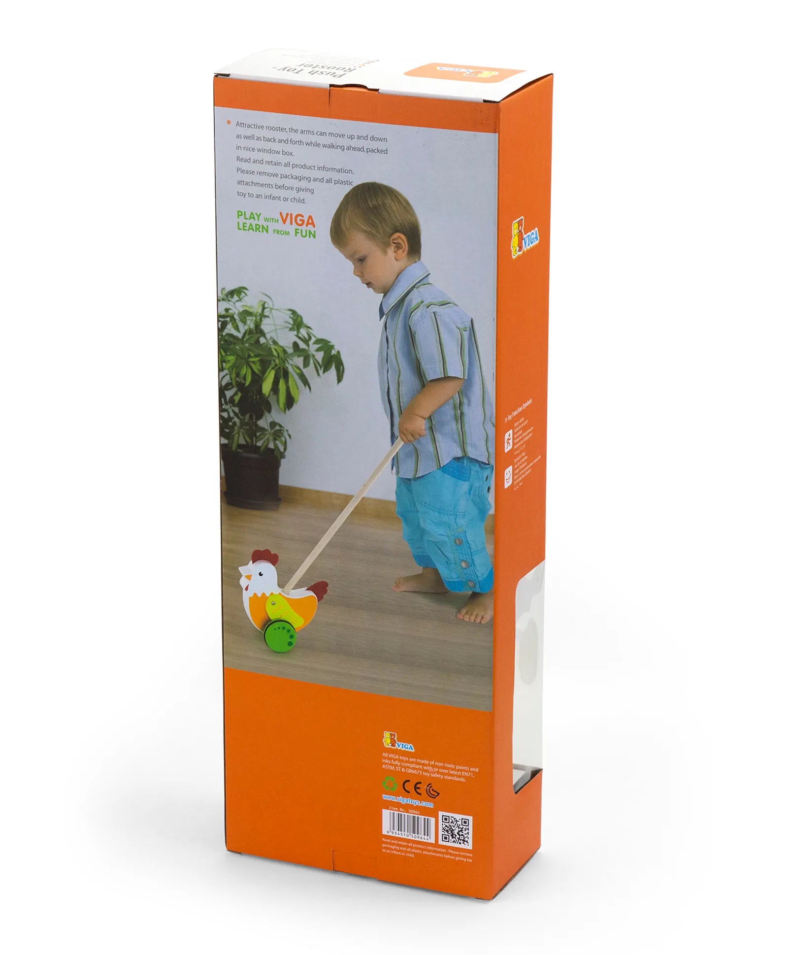 Viga's Product, fun Rooster. Watch his arms move up and down as well as back and forth when pushed along. Encourages the creativity and hand-eye co-ordination skills of children. Designed for anyone aged 2 and up, this educational toy can be enjoyed by every child in the family.