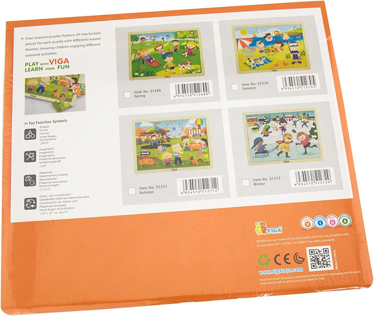 This 24-piece puzzle set this year from VIGA aims to help children to have a bigger picture of the world. Each of them have different themes and are put into different rational scenes, which improves children's motor skills and fosters their critical thinking ability at the same time. More than these benefits might encourage children to talk more while playing. A wooden storage for them all lightly making everything neat and tidy.