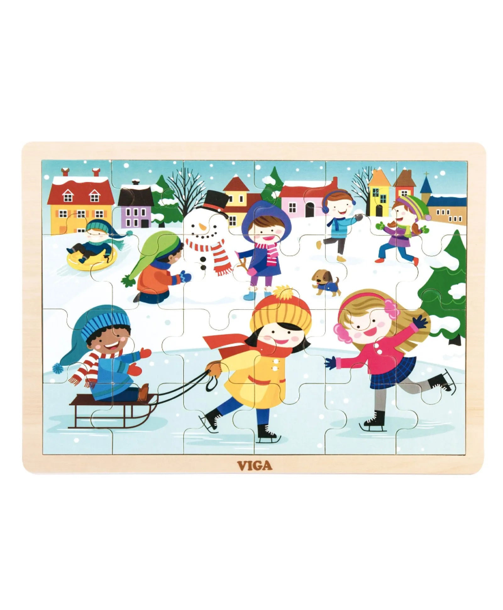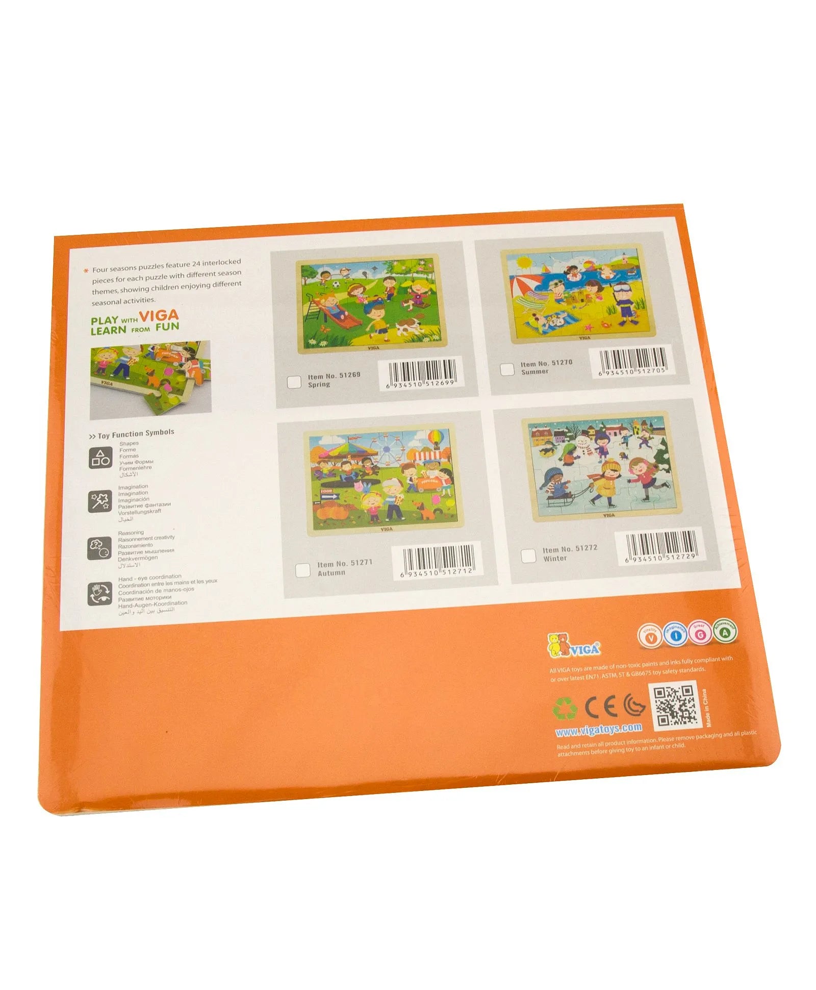 Four seasons puzzles feature 24 interlocked pieces for each puzzle with different season themes. A fun way to learn each season of the year. Great for your child or to gift someone.