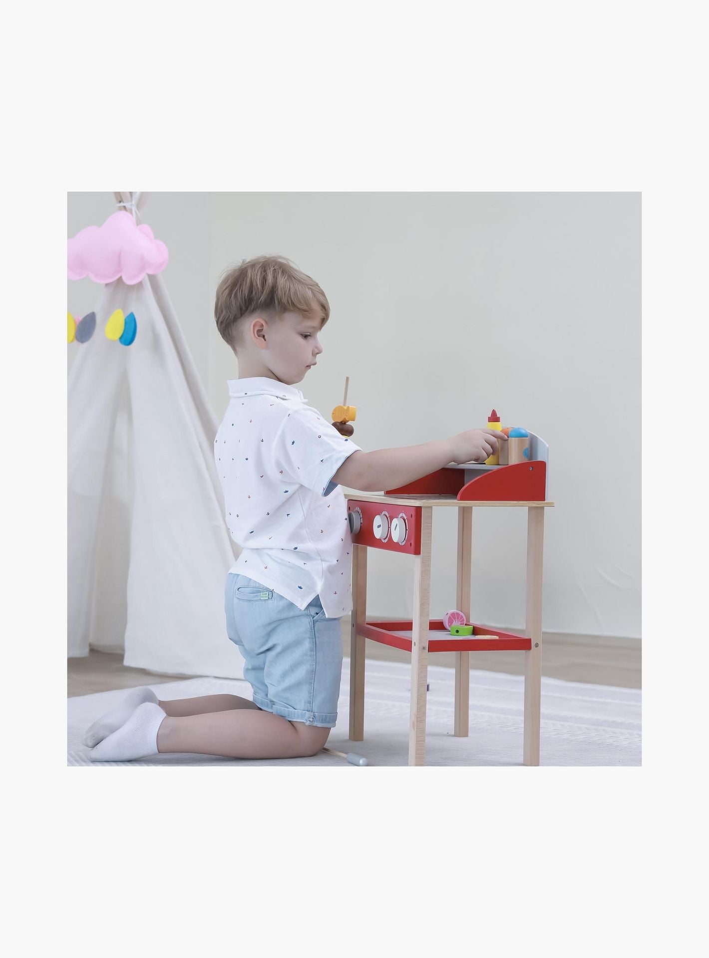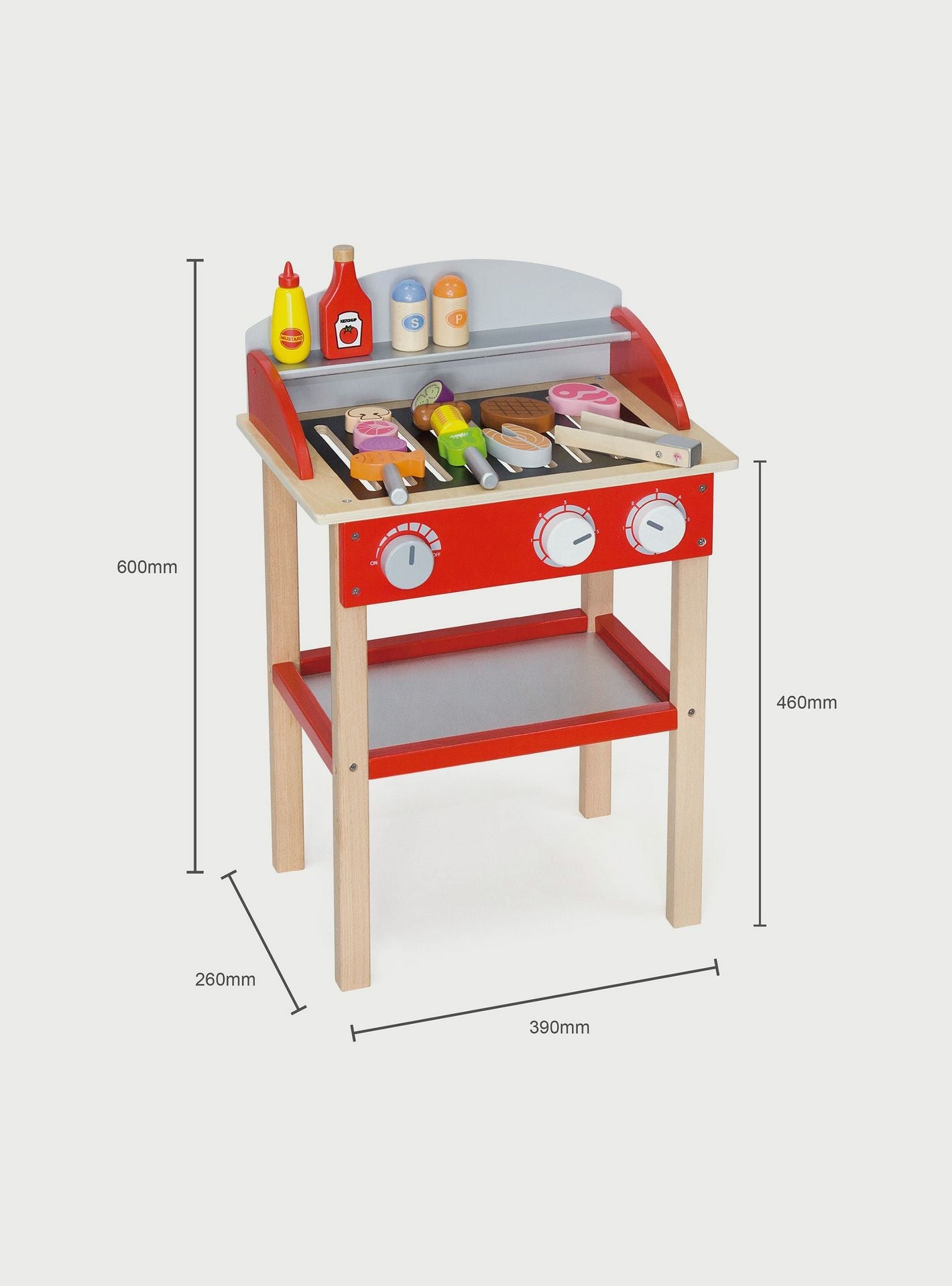 - Realistic design and accessories, including wooden sea food, vegetables, and meat, makes role play more fun and engaging