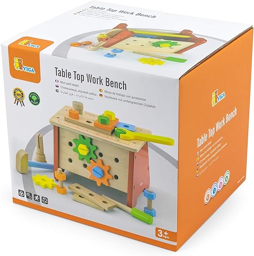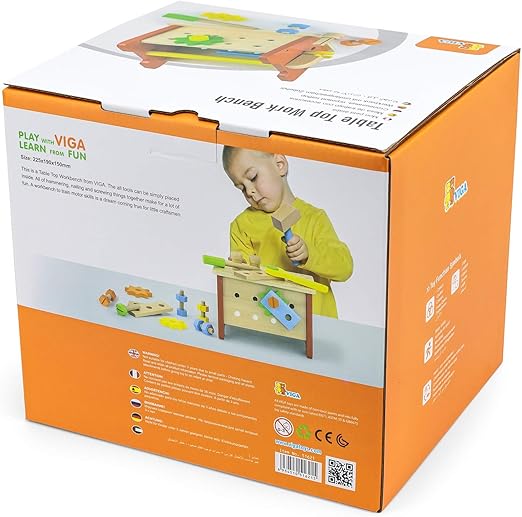 This is a table top workbench from Viga toys. The all tools can be simply placed inside. All of hammering, nailing and screwing things together make for a lot of fun. A workbench to train motor skills is a dream coming true for little craftsmen. Natural, safe, educational and beautiful, that are the features of Viga toys. All products have an attractive design. New products are regularly developed. With more than 20 years of experience Viga knows how to produce top quality toys. The toys from Viga contribute to a positive development of children.