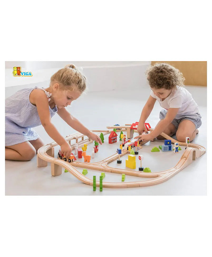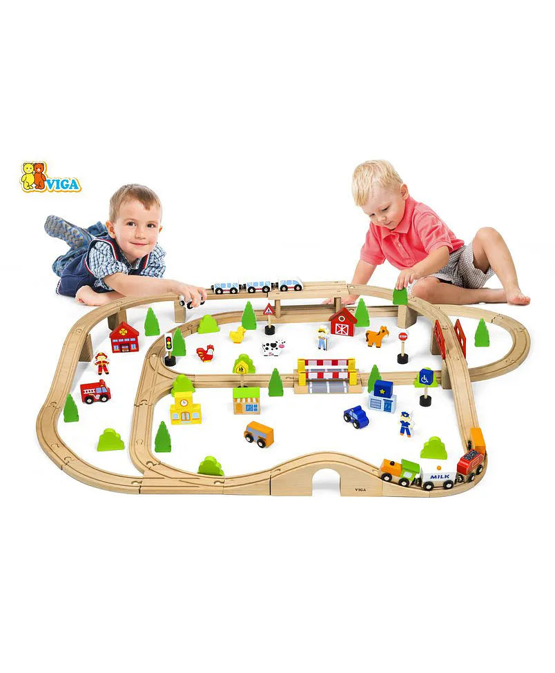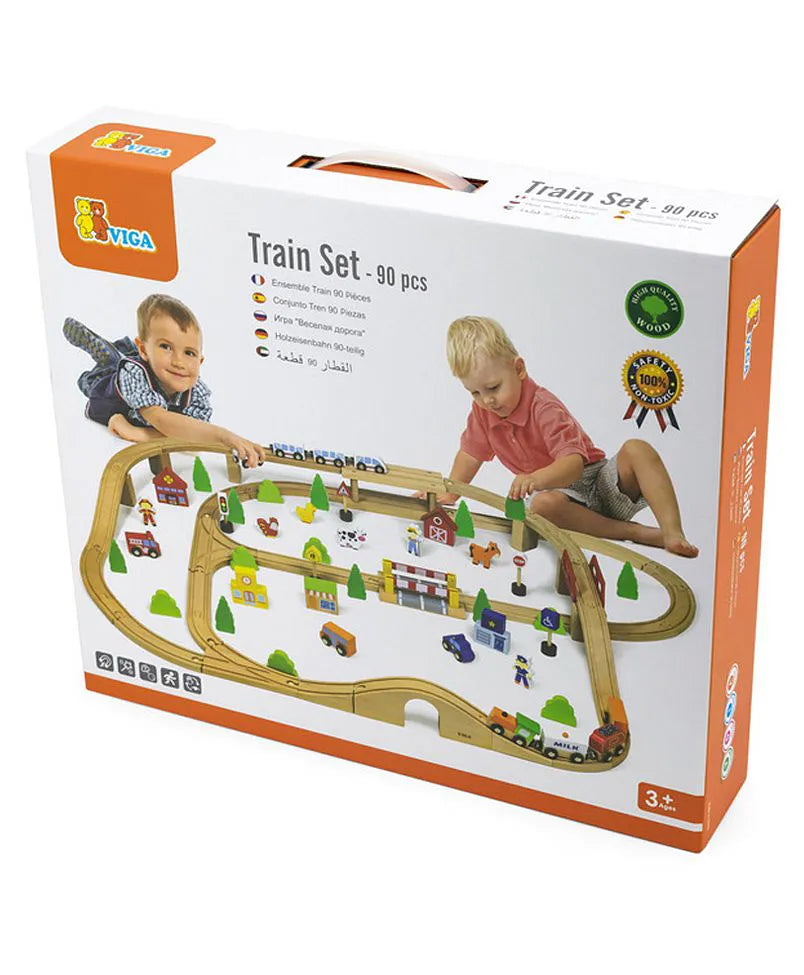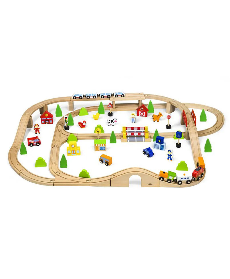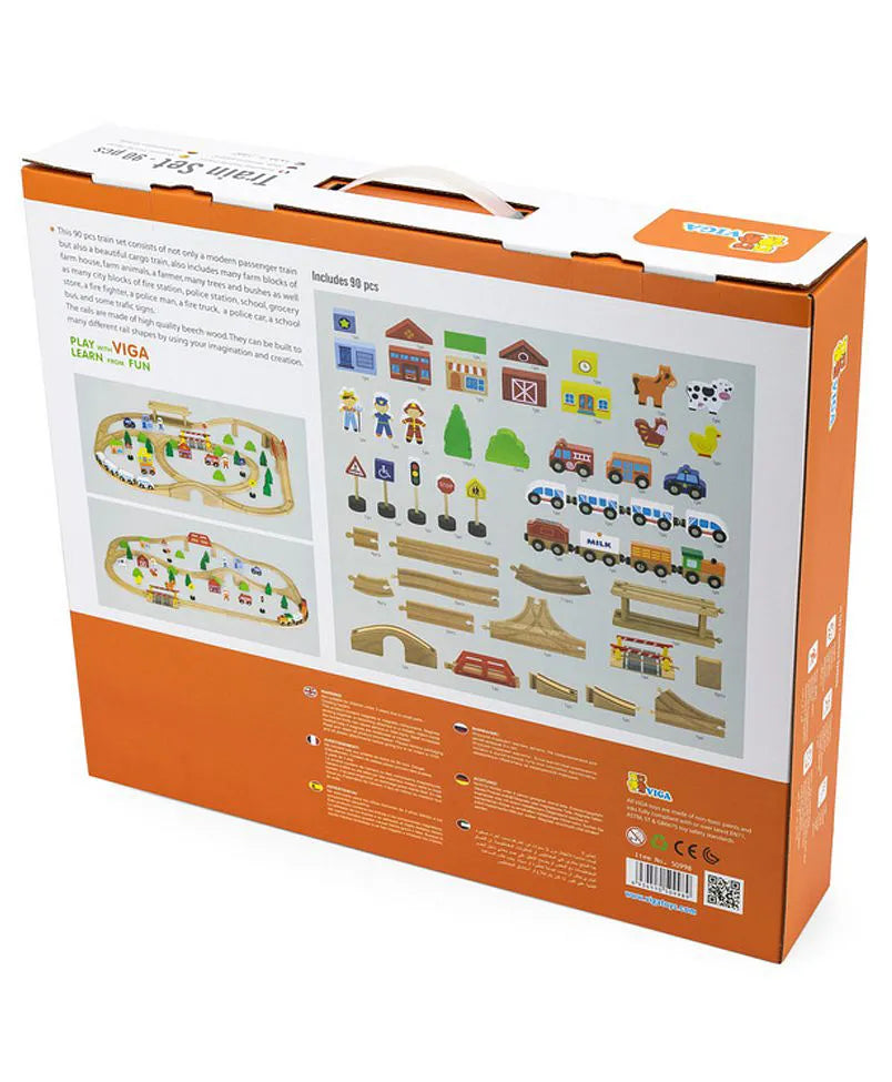This 90 pcs train set consists of not only a morden passenger train, but also a beautiful cargo train. It also includes many farm house blocks that contains farm animals, a farmer, many trees and bushes as well as many city blocks, like a fire station, a police station, a school, a grocery store, a fire fighter, a police man, a fire truck, a police car, a school bus, and some traffic signs.-The train set can be built to many different rail shapes with imagination. Besides, children can also build their favorite farm, on which they can raise various farm animals.-An educational toy set that can teach kids different roles of different jobs, as well as various traffic rules in the city. While building this train set, children's hand-eye coordination and motor skills can be perfectly practiced.