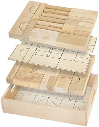 These wooden blocks are made of high quality beech wood.- They are well-sanded and have different architectural shapes with natural finishing. The blocks are packed in a wooden carry on tray for easy storage.