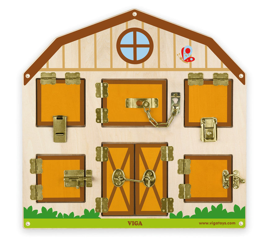 - Educational Fun: With six hinged doors, the Viga Wall Toy - Locking and Unlocking Wooden Barnyard Scene teaches kids about the important life skill of locking and unlocking while keeping them entertained for hours.