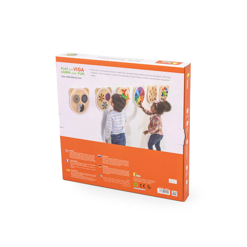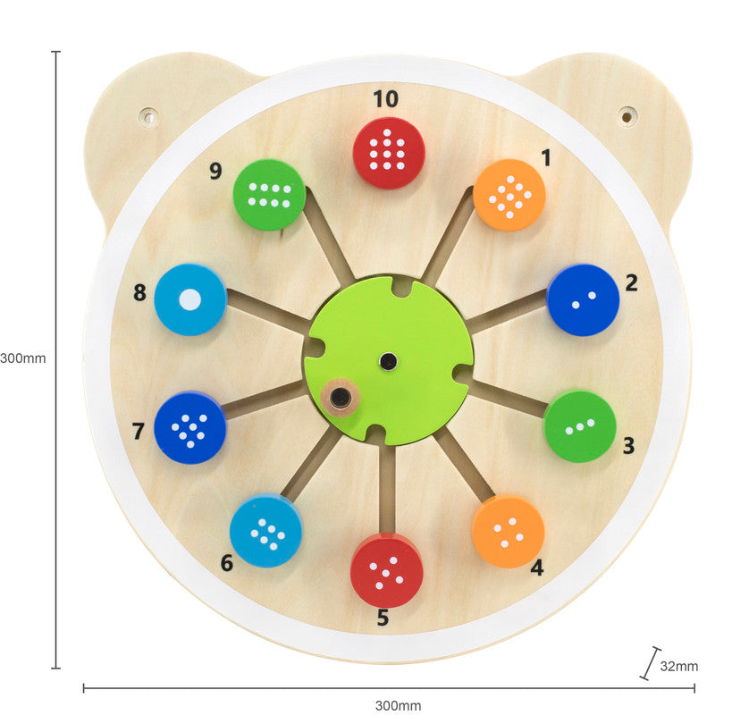 Move the round wooden blocks to match the corresponding numbers on the on the panel, improving children's color recognition, hand-eye coordination, logic thinking, number counting and recognition ability.