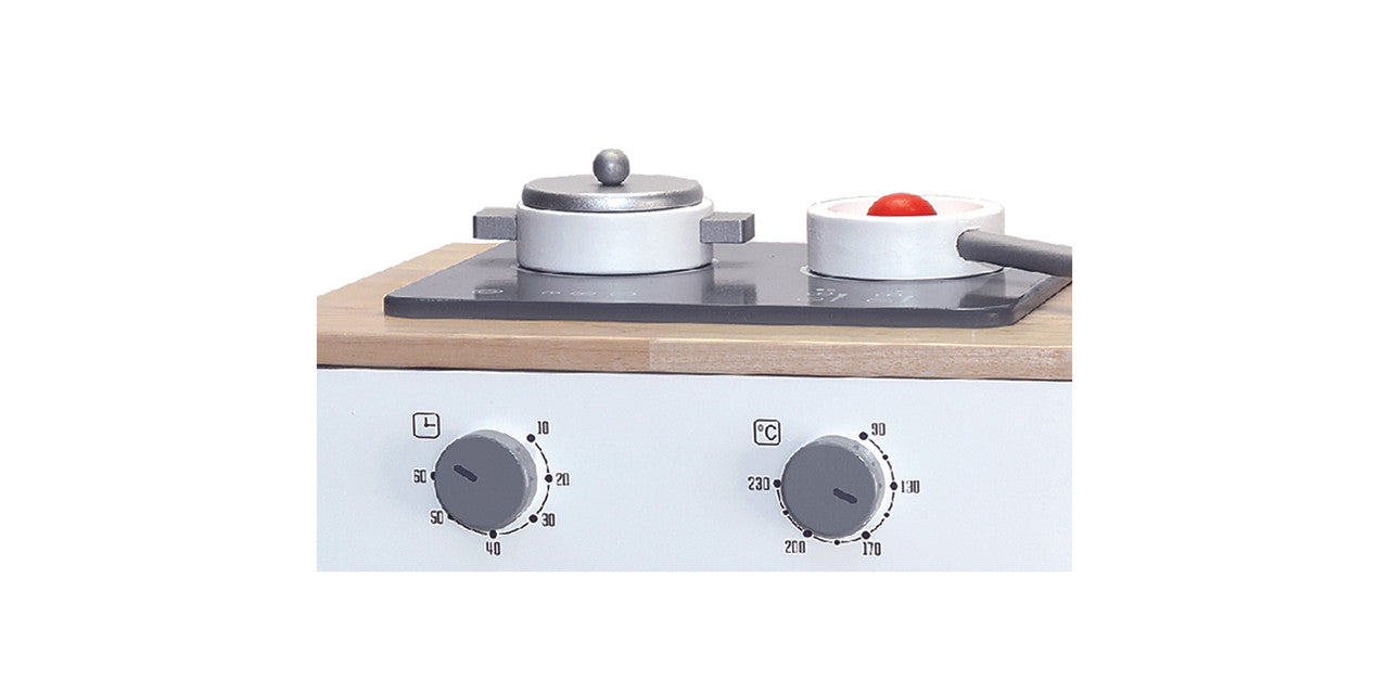 Introducing the Viga White Kitchen - Stove with Accessories, a classic and modern wooden play set designed to enhance your child's pretend play experience. Made with high-quality solid wood, this play kitchen set includes a fridge, a dishwasher, a stove with accessories, a sink, a corner shelf, a microwave, an exhaust hood, and a wall shelf. The modern design of this kitchen set provides a spacious play area for children to create their favorite meals and explore their culinary skills. This play kitchen set is perfect for parents looking to foster their child's imagination and creativity while also encouraging them to learn basic life skills. With realistic details and interactive features, this kitchen set is sure to keep your child engaged and entertained for hours.