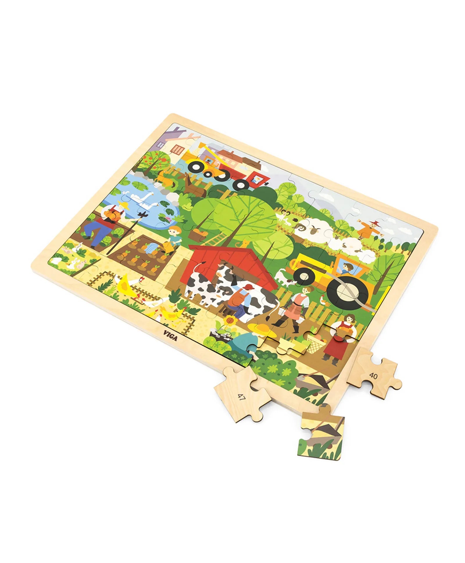 It's Puzzle Time - Down At The Farm. 48 pieces puzzle within a wooden storage tray, match up the numbers or the image underneath helping little ones make their puzzle. After finishing the puzzle, guide your children to describe the picture to you with their imagination, encouraging children to talk more while playing. The educational puzzle helps children develop strong hand-eye coordination, fine motor skills and problem-solving ability as well.