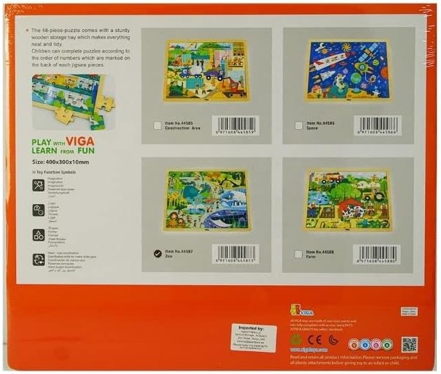 It's Puzzle Time - Down At The Farm. 48 pieces puzzle within a wooden storage tray, match up the numbers or the image underneath helping little ones make their puzzle. After finishing the puzzle, guide your children to describe the picture to you with their imagination, encouraging children to talk more while playing. The educational puzzle helps children develop strong hand-eye coordination, fine motor skills and problem-solving ability as well.
