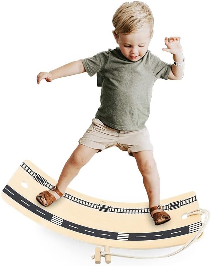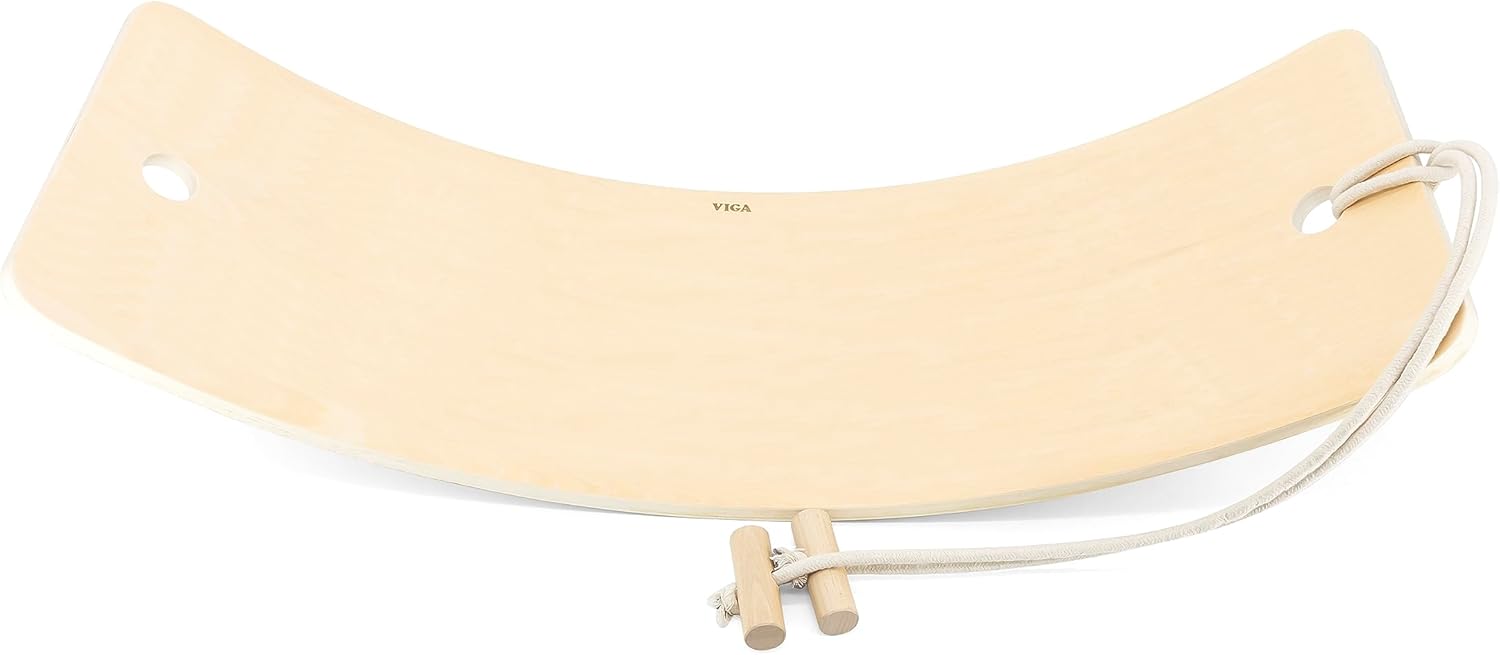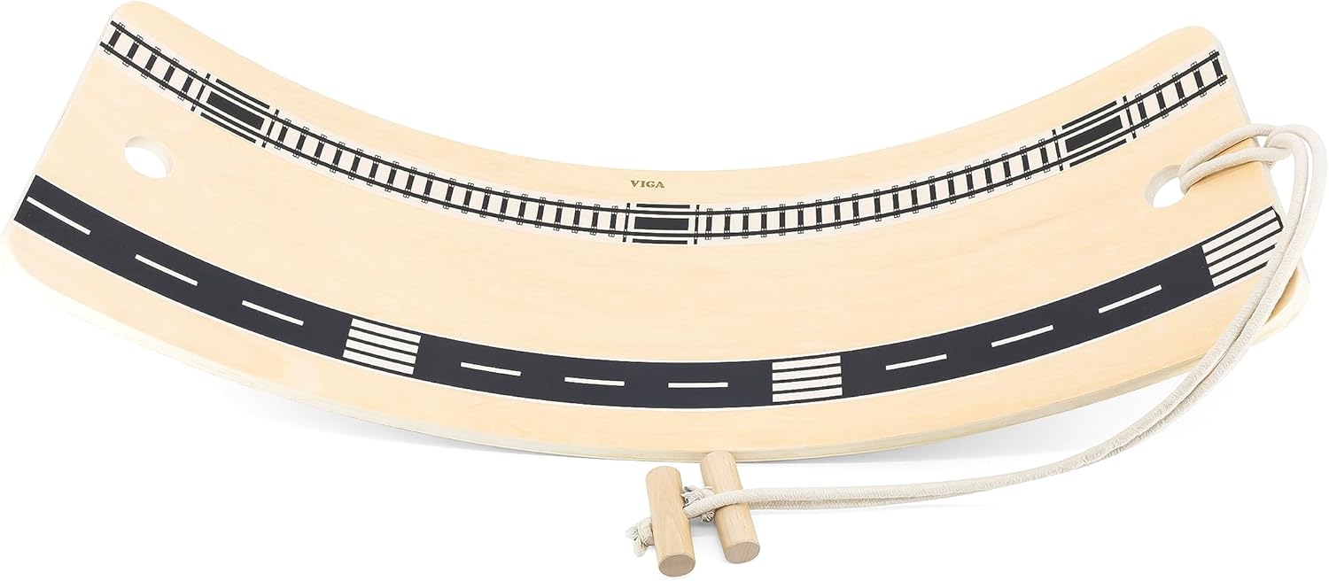 This Wooden Balance Board helps to develop balance and strengthen the body. Its simple design encourages free and creative play while helping children achieve key developmental milestones. They learn to maintain balance in standing and poses. It can be used as a swing, racing car track, surfboard, rocking boat, bed, bridge, slide and anything else that any child imagines, activating their imagination, which is incredibly important. It has a drawstring that allows the child to sit on it and move around.