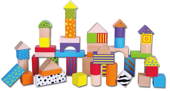 Viga Coloured Pattern Blocks are a set of 50 basic wooden building blocks that come in exciting colours and patterns. Watch your child's imagination grow as they learn to make structures ranging from simple to complex, depending on their ages. This is a toy that grows with your child and will last for years to come.