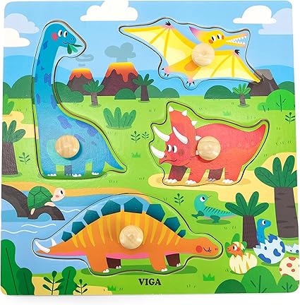 Introduce your little one to the captivating world of animals and skills with the Viga Farm Animal Wooden Knob Puzzle. This timeless puzzle set combines entertainment and education, enabling your child to refine their fine motor skills and animal shape recognition. Their hand precision and eye-hand coordination flourish as they guide the vibrant, farm animal puzzle pieces into place. With four puzzles boasting diverse animal shapes, each equipped with ergonomic handles, young minds easily engage in immersive play.