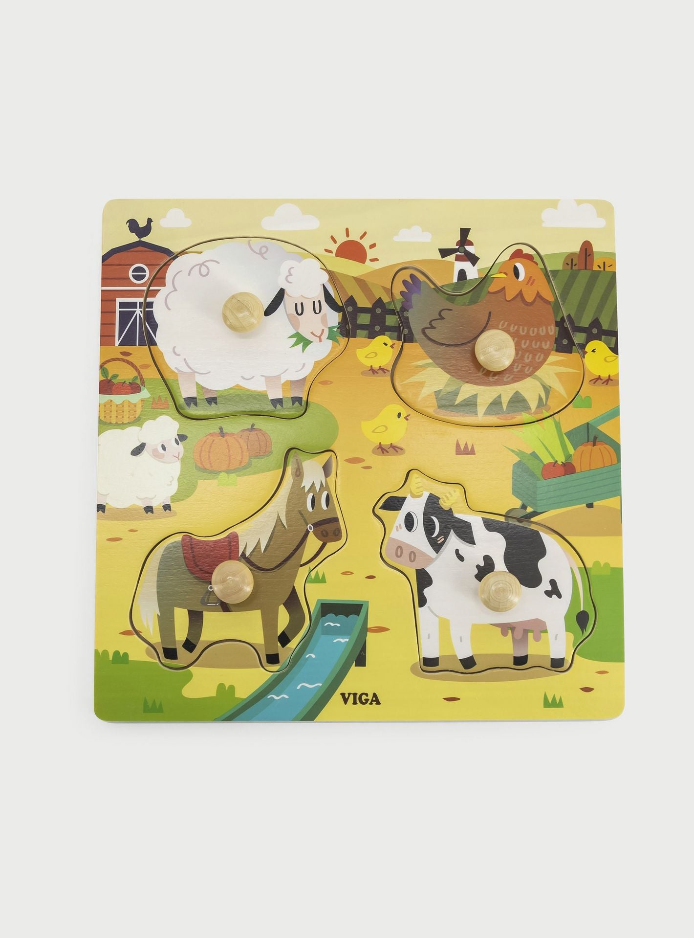 Viga Wooden Knob Puzzle - Farm Animals