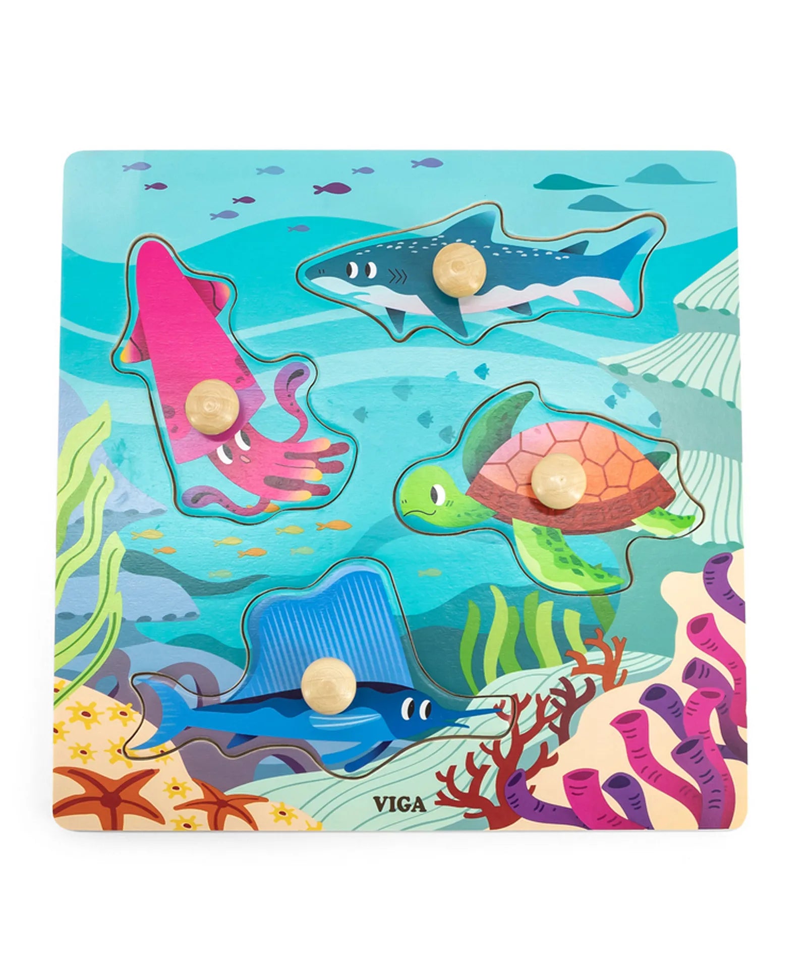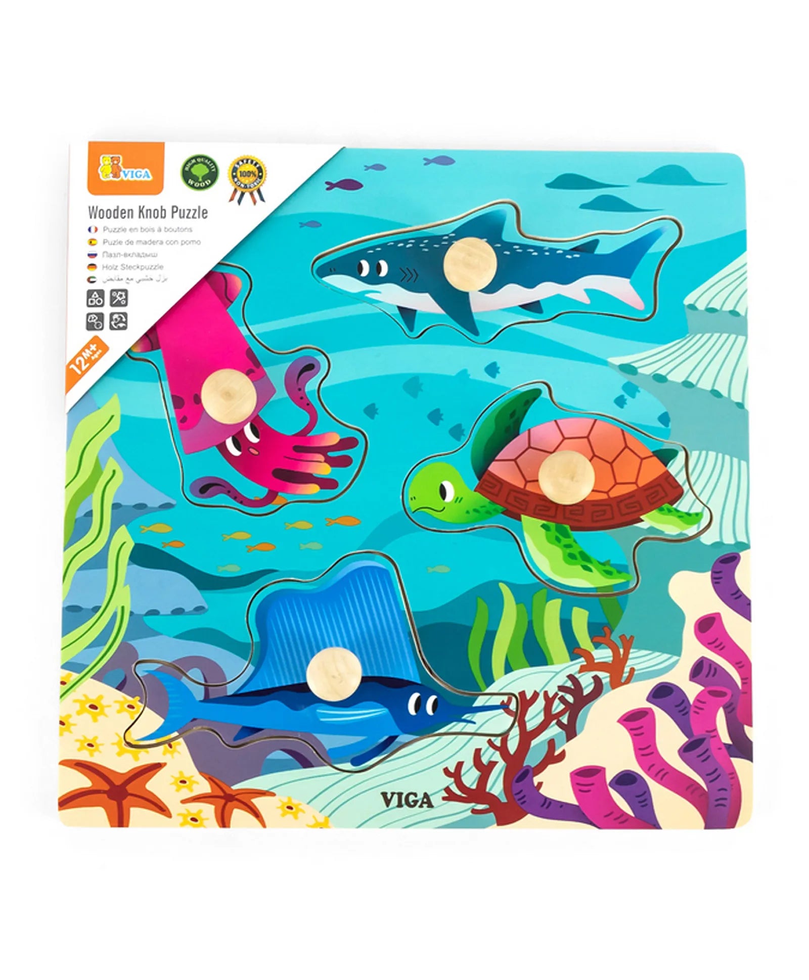 Introduce your little one to the captivating world of animals and skills with the Viga Farm Animal Wooden Knob Puzzle. This timeless puzzle set combines entertainment and education, enabling your child to refine their fine motor skills and animal shape recognition. Their hand precision and eye-hand coordination flourish as they guide the vibrant, farm animal puzzle pieces into place. With four puzzles boasting diverse animal shapes, each equipped with ergonomic handles, young minds easily engage in immersive play.