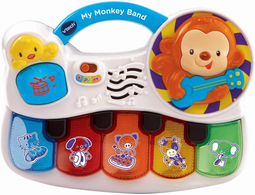 Baby'S Own Musical Band! Baby Can Join Monkey And His Animals Friends On Their Musical Journey. Introducing Your Little One To Instruments Such As The Piano, The Saxophone, The Drums And The Violin. Includes 5 Light-Up Piano Keys That When Pressed Teach Animal Names And Their Sounds And Then The Instrument That They Are Playing! Spin The Monkey To Hear Guitar Sounds And Listen To The 2 Uplifting Sing-Along Songs And 10 Happy Melodies. Baby Will Be Learning More Than Just Instruments With This Band. With A Carry Handle Baby Can Learn And Make Their Very Own Music Anywhere!.