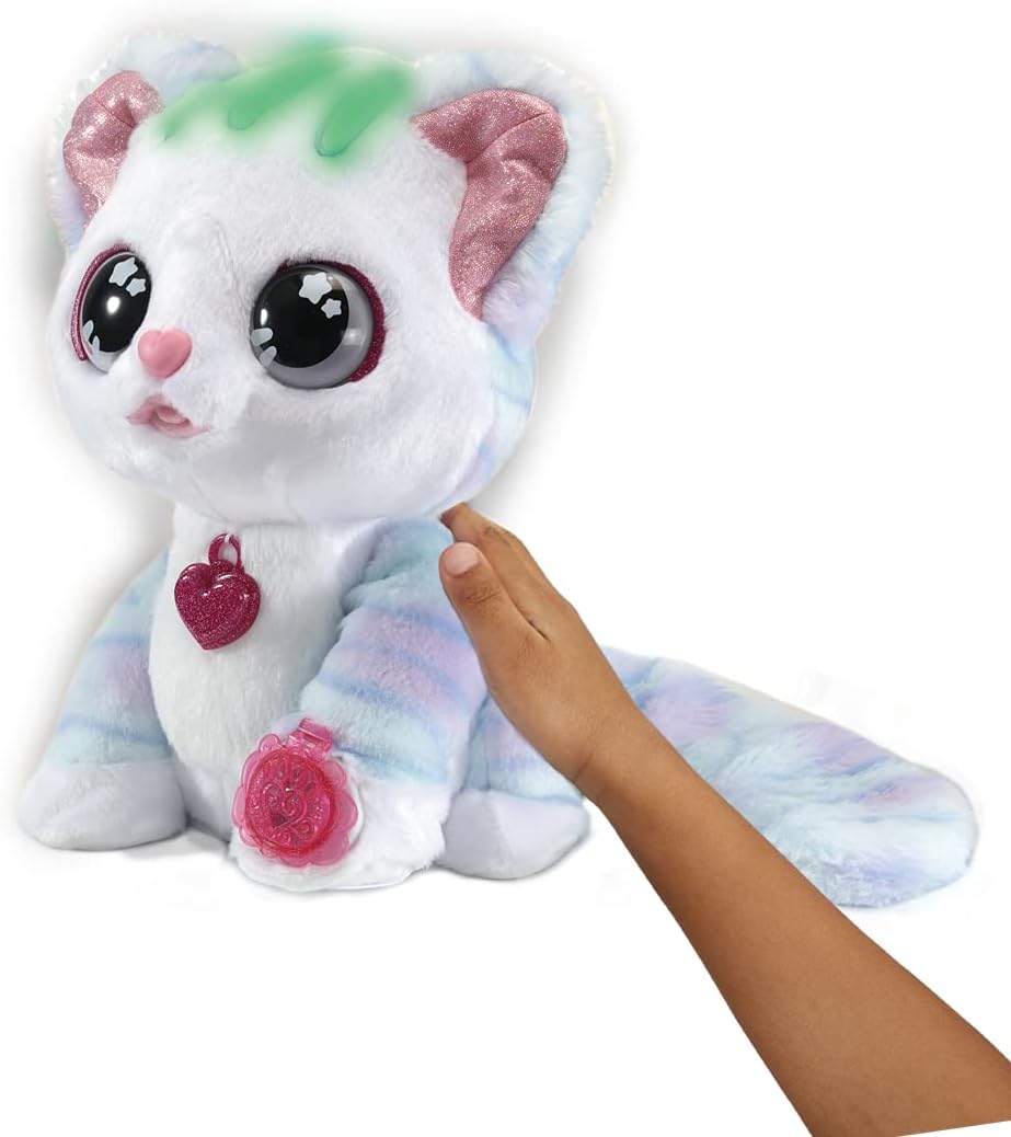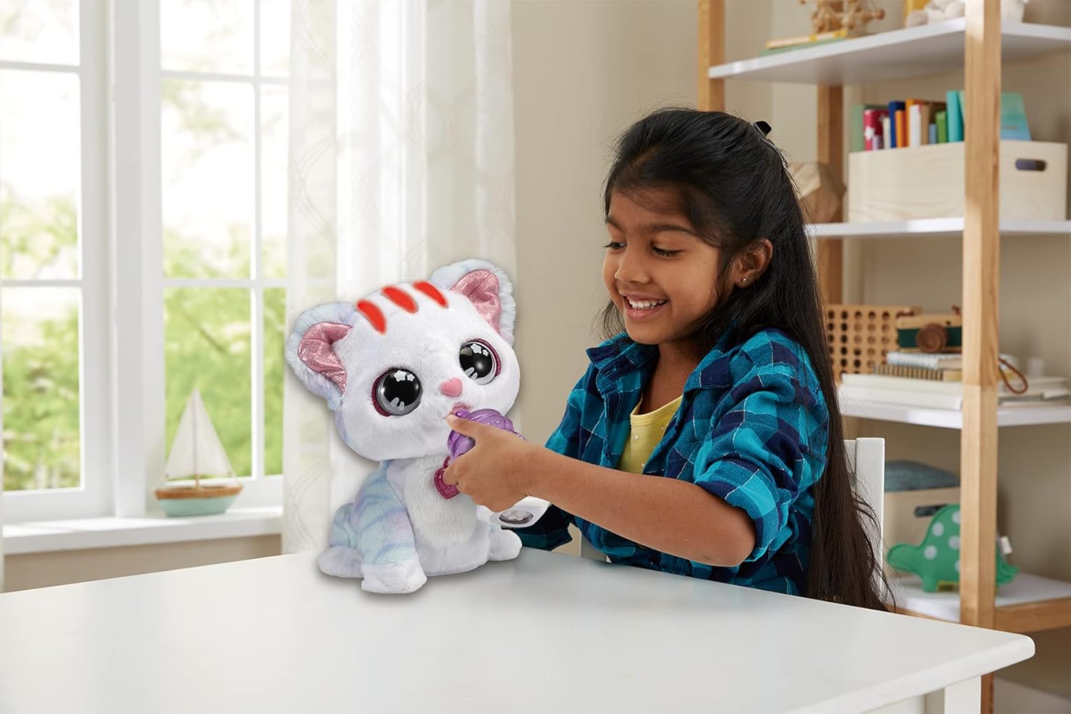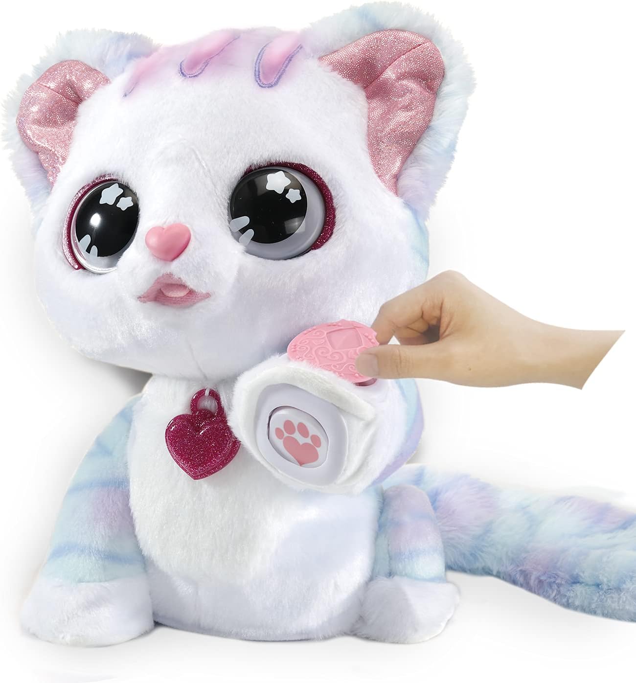 - EDUCATIONAL TOY: This magical kitten is a fun, interactive toy who meows and purrs like a real cat! She would love to be your new cuddle buddy and when you press her tummy it magically translates her cute meows into words