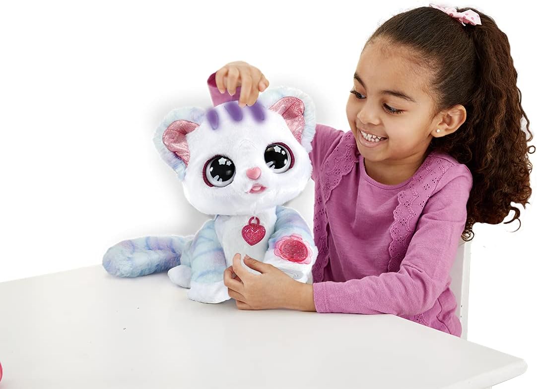 - SENSORY PLAY: Perfect for encouraging nurturing play and empathy, if she’s hungry, sleepy or itchy the colour-changing fur stripes on her head will show you how she’s feeling and she will respond to you stroking or feeding her