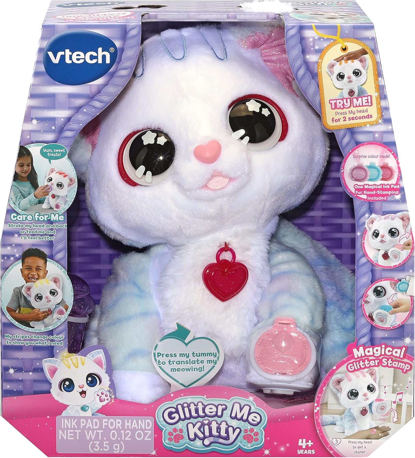 - GLITTER ME KITTY: Say hello to your new best friend, Glitter Me Kitty! An adorable cuddly kitten who shows you how much she loves you! Press the meow-gical kitty's head and she'll place a glitter stamp on your hand!