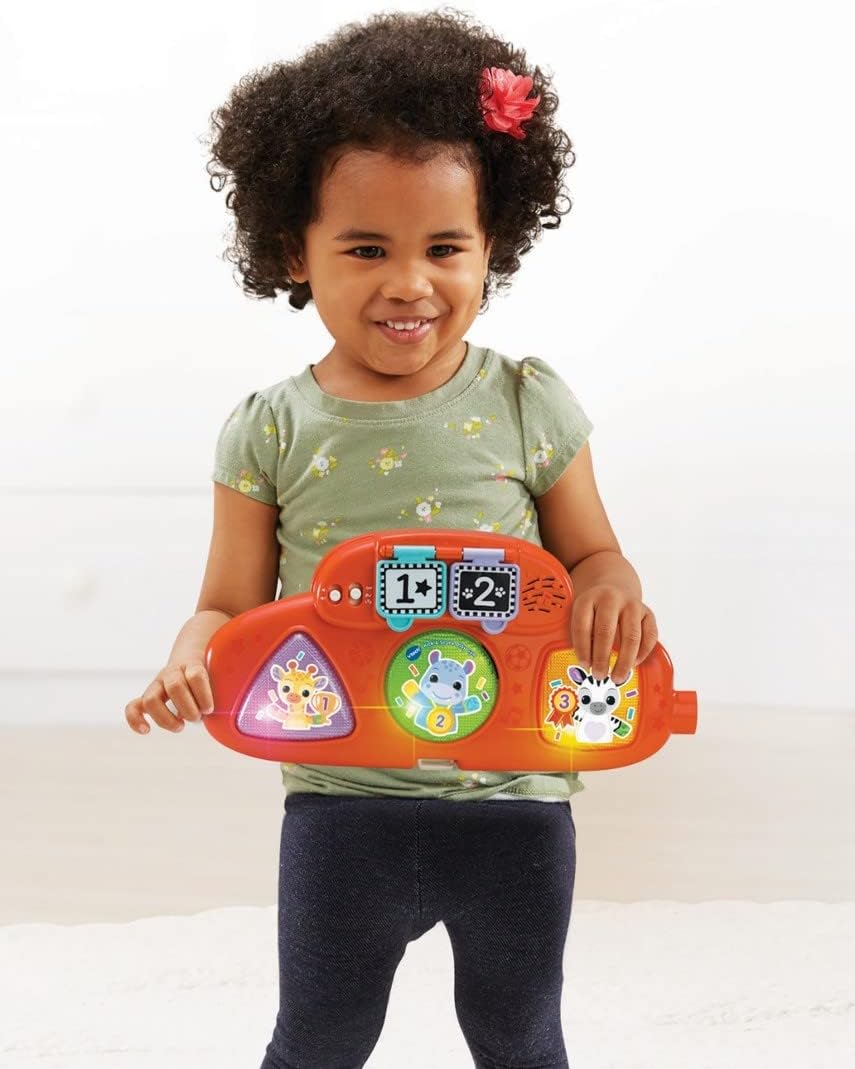 - The detachable activity panel teaches colours shapes and animals, strengthening language skills and providing on-the-go play and exploration with music and songs