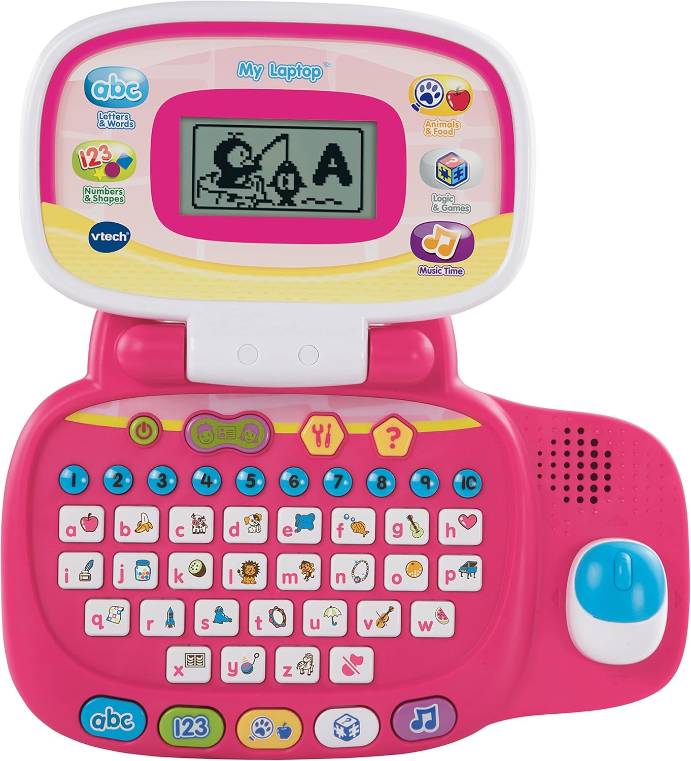 Pre-school laptop with child-friendly four-directional mouse and 30 fun and educational activities that teach early computer skills and age appropriate curriculum including phonics, counting and spelling. Features five progressive learning categories letters and words, numbers and shapes, animals and foods, logic and games and music time. You can also customise your child’s experience by entering their name, age and favourite food in the all about me mode, also create a personal avatar, choose a screen wallpaper and opening tune. Friendly penguin character leads and encourages play as a helper and friend. Encourages logical thinking, visualisation skills and hand-eye co-ordination.