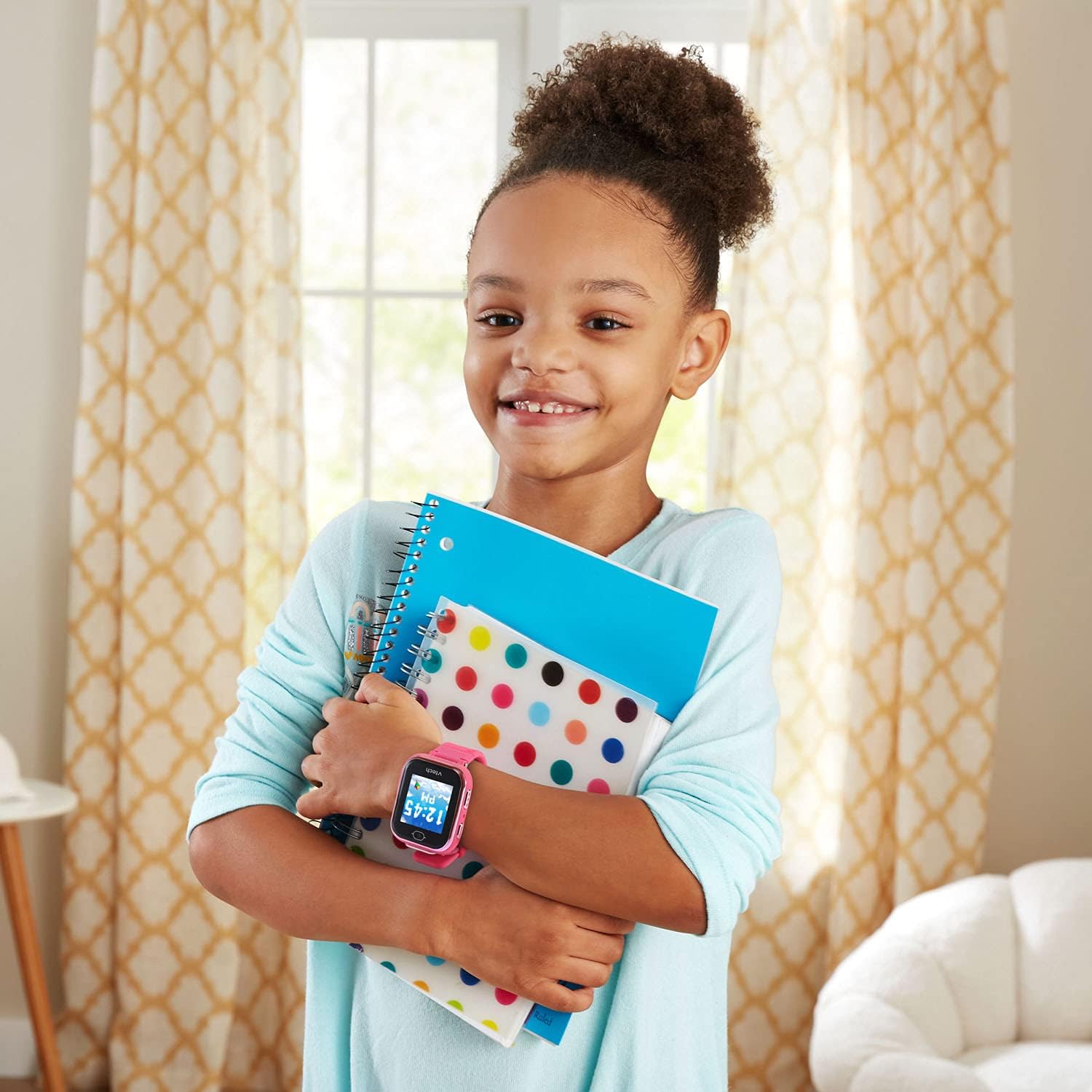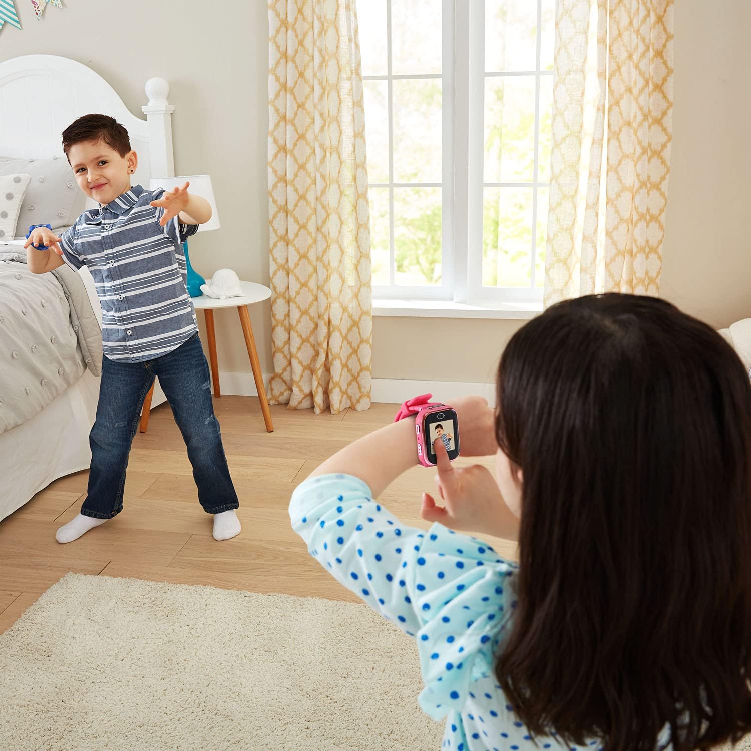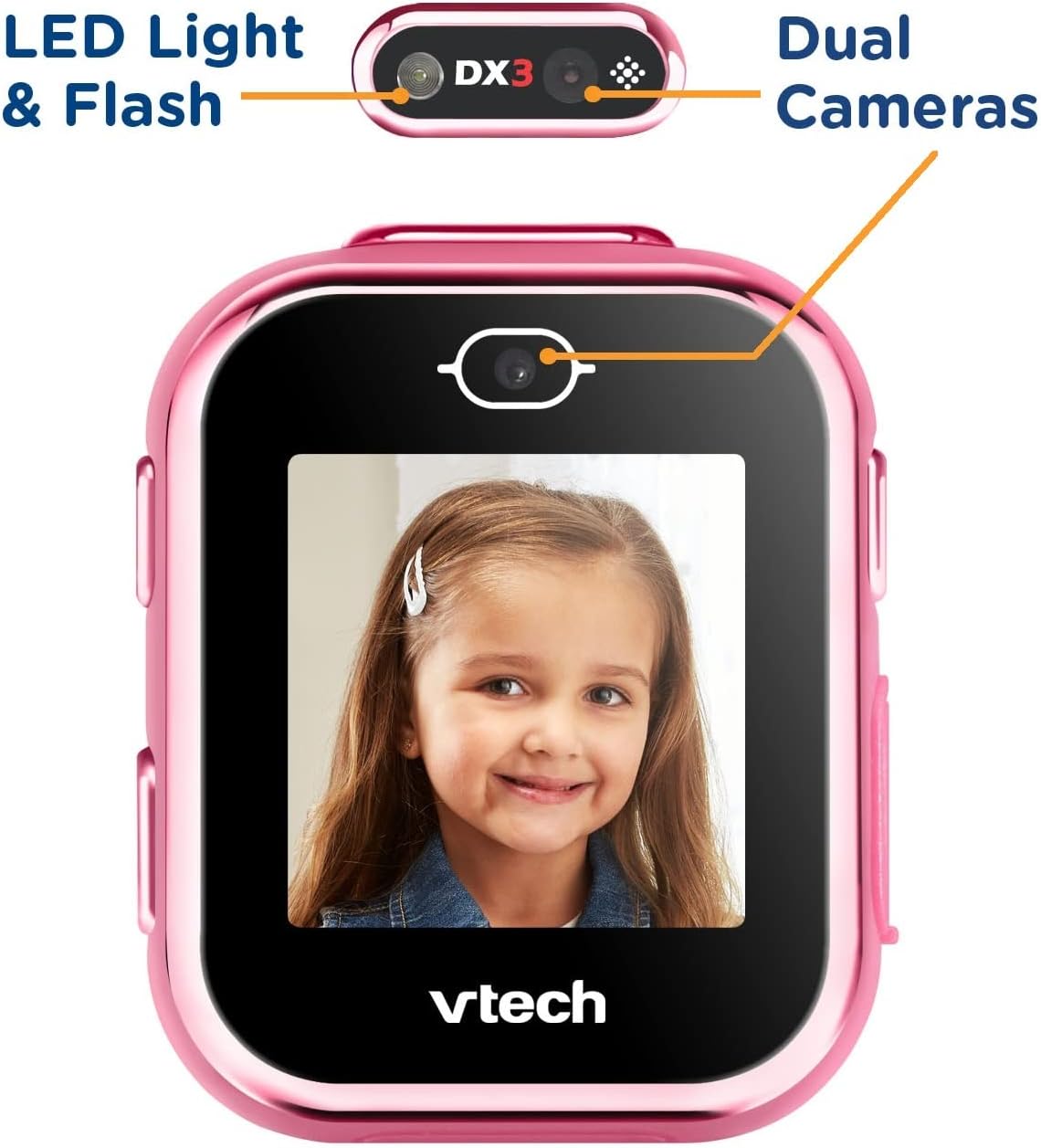 The coolest and best-selling kids' smartwatch brand is herethe KidiZoom Smartwatch DX3. The kid-friendly DX3 features dual cameras for pictures, selfies and videos along with one- and two-player games, daily reminders and more. The light on the watch doubles as camera flash and flashlight. Create custom clockfaces from your own photos or swipe through 50+ animated faces to make time-telling exciting. Set Daily Reminders to help you stay on track, and switch to School mode when it's time to limit the DX3 to a watch only. Play single-player games like Monster Catcher and find 80+ invisible creatures! Challenge yourself with movement games: Racing Run, Crazy Dance and Funky Jump. Pair up with a friend who has a DX3 to share preset messages or play Treasure Hunt, Find the Diamonds and Tic-Tac-Toe. Upcycle the top of the package and use it as a watch storage case! Download more free games, clockfaces and camera effects from Learning Lodge. Intended for ages 4+ years. Includes built-in, rechargeable lithium ion battery and Micro-USB cable. Do not charge using a third-party adapter.