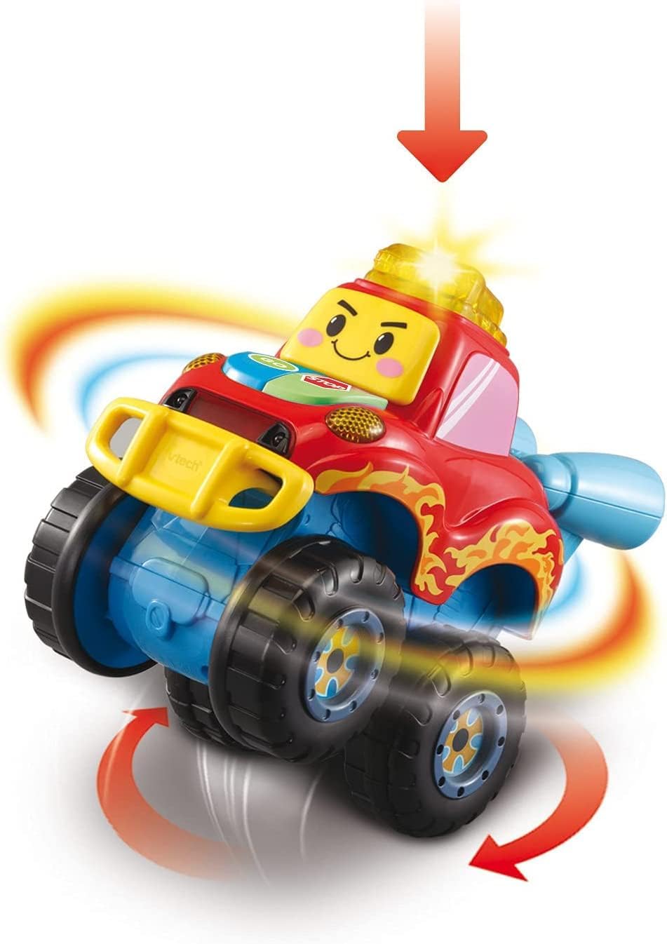 Get ready to roll with this awesome Toot Toot Drivers Smart Monster Truck by VTech! This chunky, remote-free toy truck uses IR sensors that detect your child's movement and reacts accordingly! An ideal baby interactive toy to help encourage toddlers and young children to be active, while developing their motor skills. Includes 2 built-in motors with 2 modes of play for lots of fun, varied movements at the press of a button! Watch as this chunky trunk spins around and travels left to right and forwards, while toddlers crawl and follow after it. This baby music toy features a light up roof button that triggers vehicle facts, phrases and songs along with the fun movement, great for encouraging pretend play and language development, while Stop & Go buttons teach colours and safety. Watch as your child makes up their own role-play scenarios using their imagination, while developing their motor skills and understanding cause and effect. 4 x AA Batteries Required.