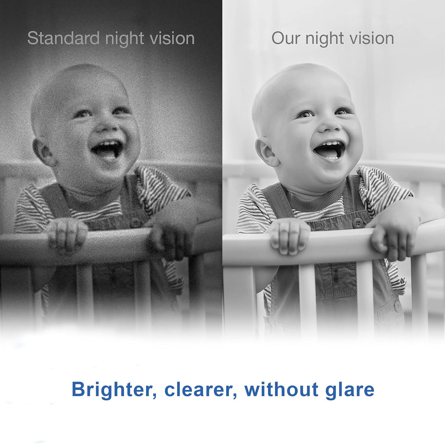 Automatic Invisible Infrared Night Vision - When bed time comes, the camera switches to night vision mode automatically without any lights to disturb your child, enabling you to keep an eye on your infant in the dark from anywhere in the house.