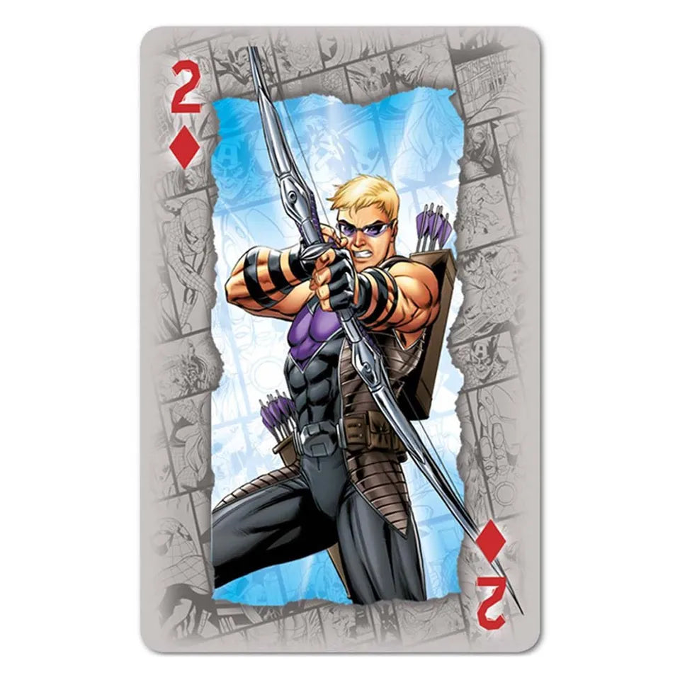 Marvel Universe fans can now play with this brand new bespoke Waddingtons Number 1 playing cards ,Play your favourite card games with your favourite characters including Iron Man, Spider-Man and Captain America ,Linen-finish playing cards ,Great game on-the-go, at home and the perfect travel companion ,Hours of entertainment as you master much-loved card games from snap to black jack