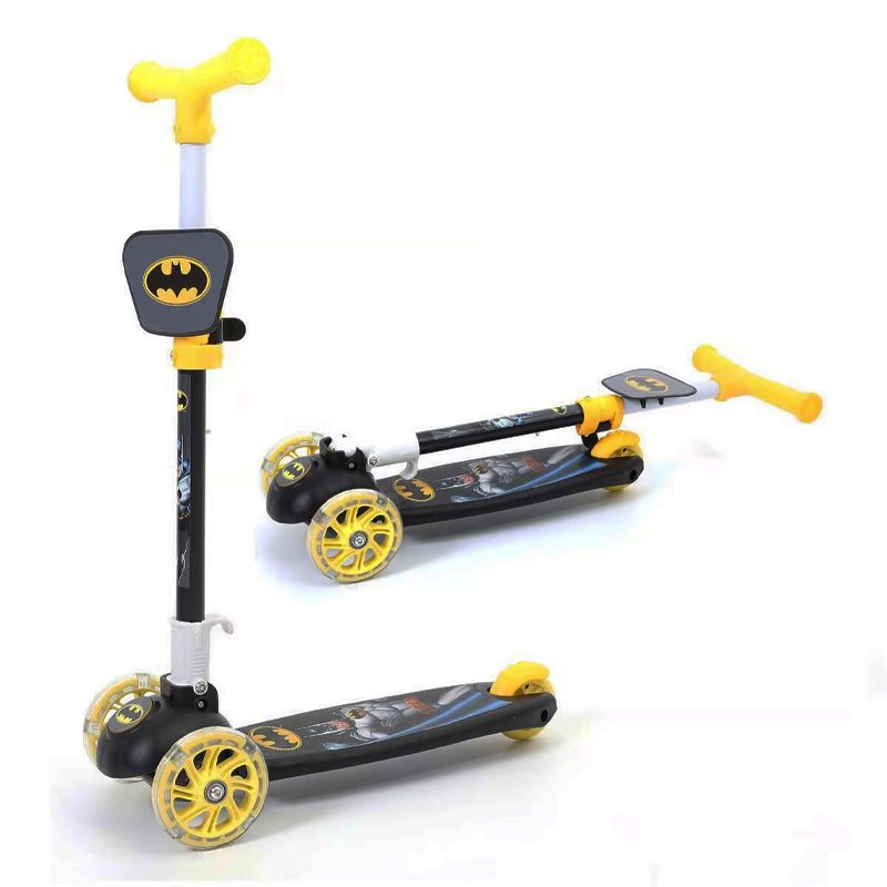 Zoom into action with the Batman Kick Scooter, a sleek and stylish ride for young superheroes. Featuring a fun Batman-themed design and available in assorted colors, this kick scooter adds a touch of Gotham flair to every adventure. Its compact size makes storage and transport a breeze, while the adjustable handlebar height ensures a comfortable ride for kids of all ages. Crafted with durable construction, this scooter is built to withstand the rigors of outdoor play, promising hours of fun-filled escapades. Get ready to patrol the streets of Gotham in style with the Batman Kick Scooter!