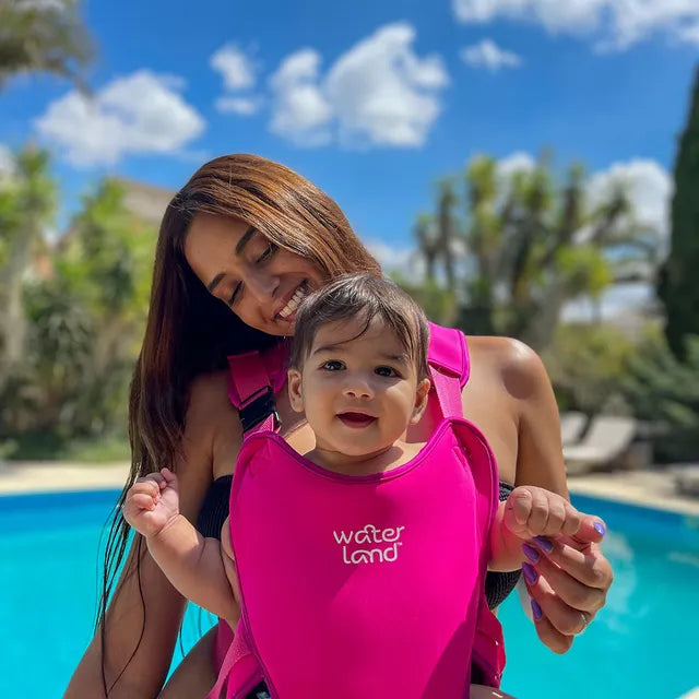 WaterLand guarantees comfort and security, enabling you to cherish every adventure together as a family. Explore our baby carriers in 7 vibrant colors. Each crafted to reflect your style and bond with your little one. WaterLand maintains your baby’s temperature in water with its innovative neoprene material. This ensures excellent insulation, keeping your little one warm against the wind and cold, whether they’re in or out of the water.You and your baby feel secure while in the water, and your hands are free and available.Easy to use – just adjust it once and wear it like a T-shirt! Padded shoulder straps. Easy-to-control safety buckles.It is the ultimate all-season baby carrier, perfect for days at the beach, pool, or even in the snow. Lightweight and easily stored and carried in travel bags.
