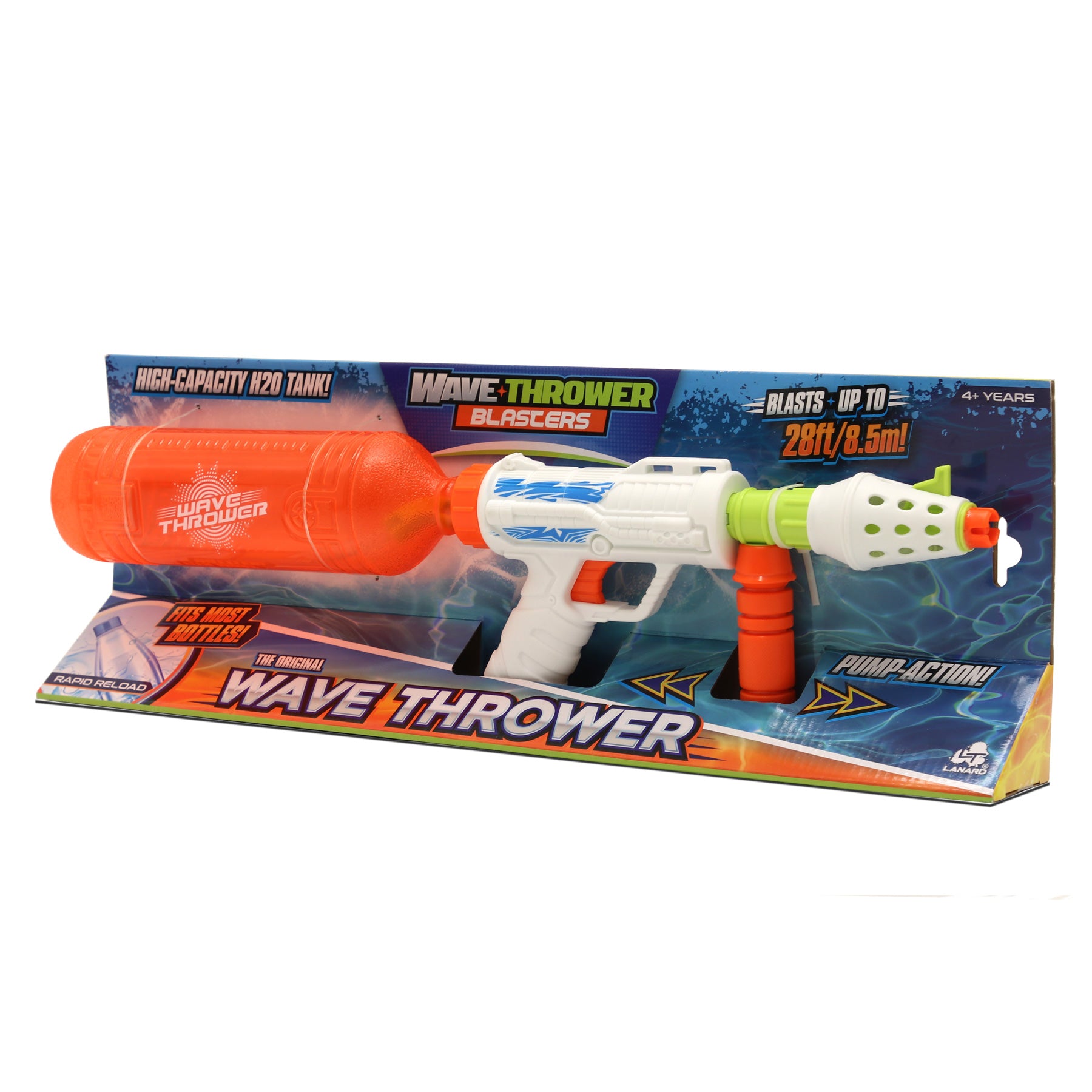 Pump power water gun has awesome shooting distance - up to 30 feet! Detachable water bottle can be refilled or interchanged with most plastic soda bottles. Ages 4+.