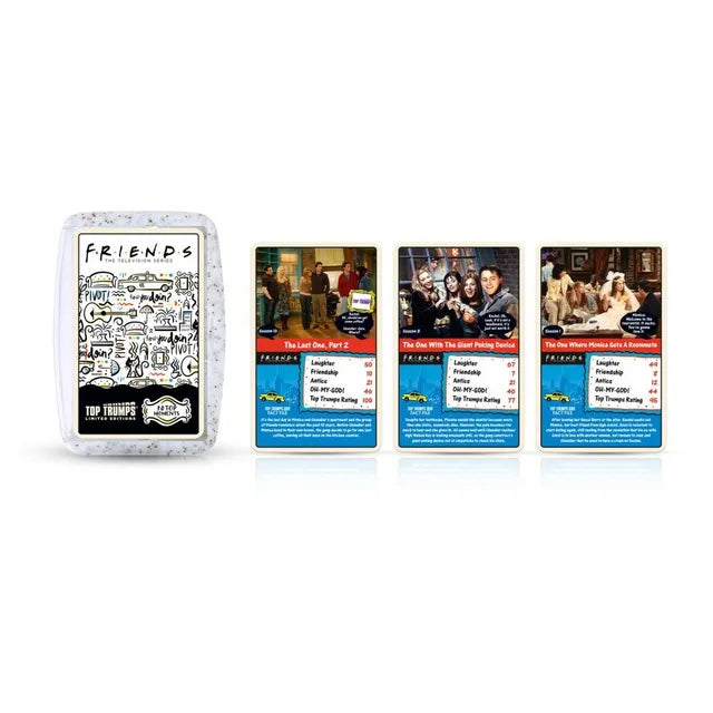Woo-pah! It's time to join the legendary Friends, from one of TV's best-loved sitcoms in the Friends edition of Top Trumps. The pack is full of the best Friends' moments, from the laugh out loud Holiday Armadillo', to the hilarious giant poking device and Monica and Ross' unforgettable dance routine! The glorious cappuccino case contains a pack full of the best Friends' moments, from the laugh out loud Holiday Armadillo', to the hilarious giant poking device and Monica and Ross' unforgettable dance routine!