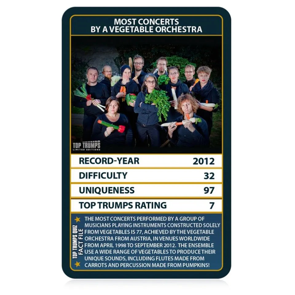 - Prepare to outsmart your opponents, discover new and exciting records and duel your way to becoming the Top Trump.