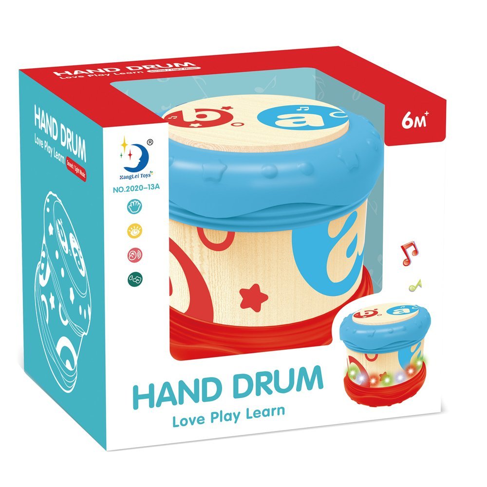 The Hand Drum is a fun and educational musical instrument designed to engage children in play and learning. Made from durable wood and plastic materials, this hand drum is safe and sturdy for young children to use. It features built-in sound and light music effects that add excitement to playtime and stimulate auditory and visual senses.