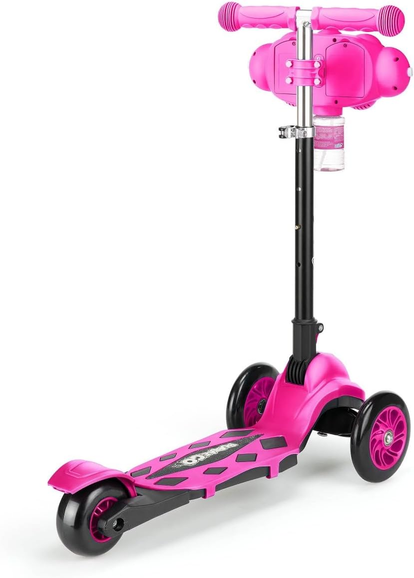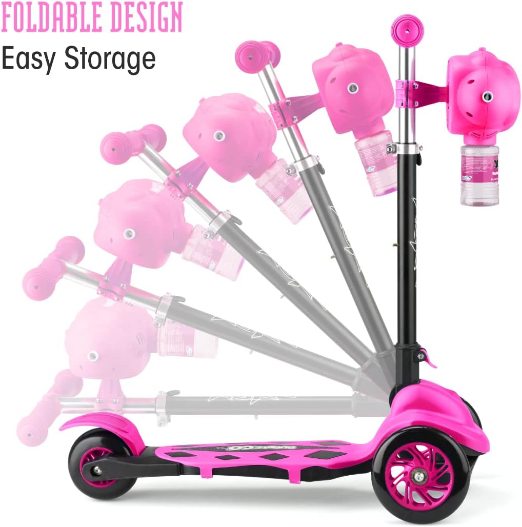 - ADJUSTABLE & FOLDABLE: The bubble scooter has an adjustable aluminium T-bar stem that can be raised as they grow (50-67cm) with super soft ergonomic handles. The tri-scooter's stem can be folded down for easy carrying and the bubble machine can be removed.