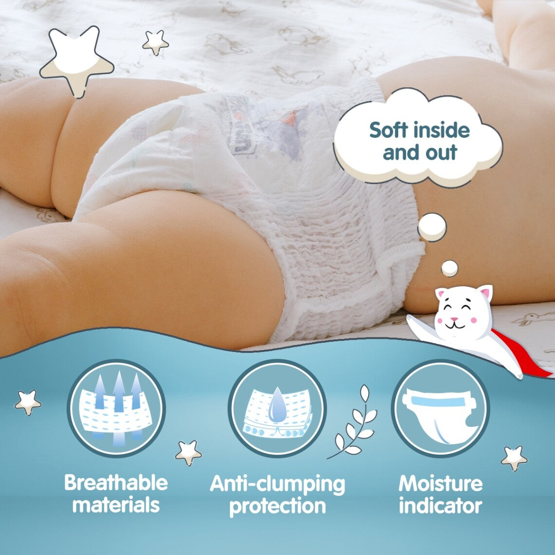 Yokosun Premium Diaper Pants are the latest innovation from the trusted Yokosun brand, thoughtfully designed to meet the needs of today's parents and ensure up to 12 hours of uninterrupted, peaceful sleep for your baby. Crafted with cutting-edge Japanese absorbent technology, these diaper pants offer rapid moisture absorption and retention, keeping your baby dry and comfortable while helping to prevent skin redness and irritation.
