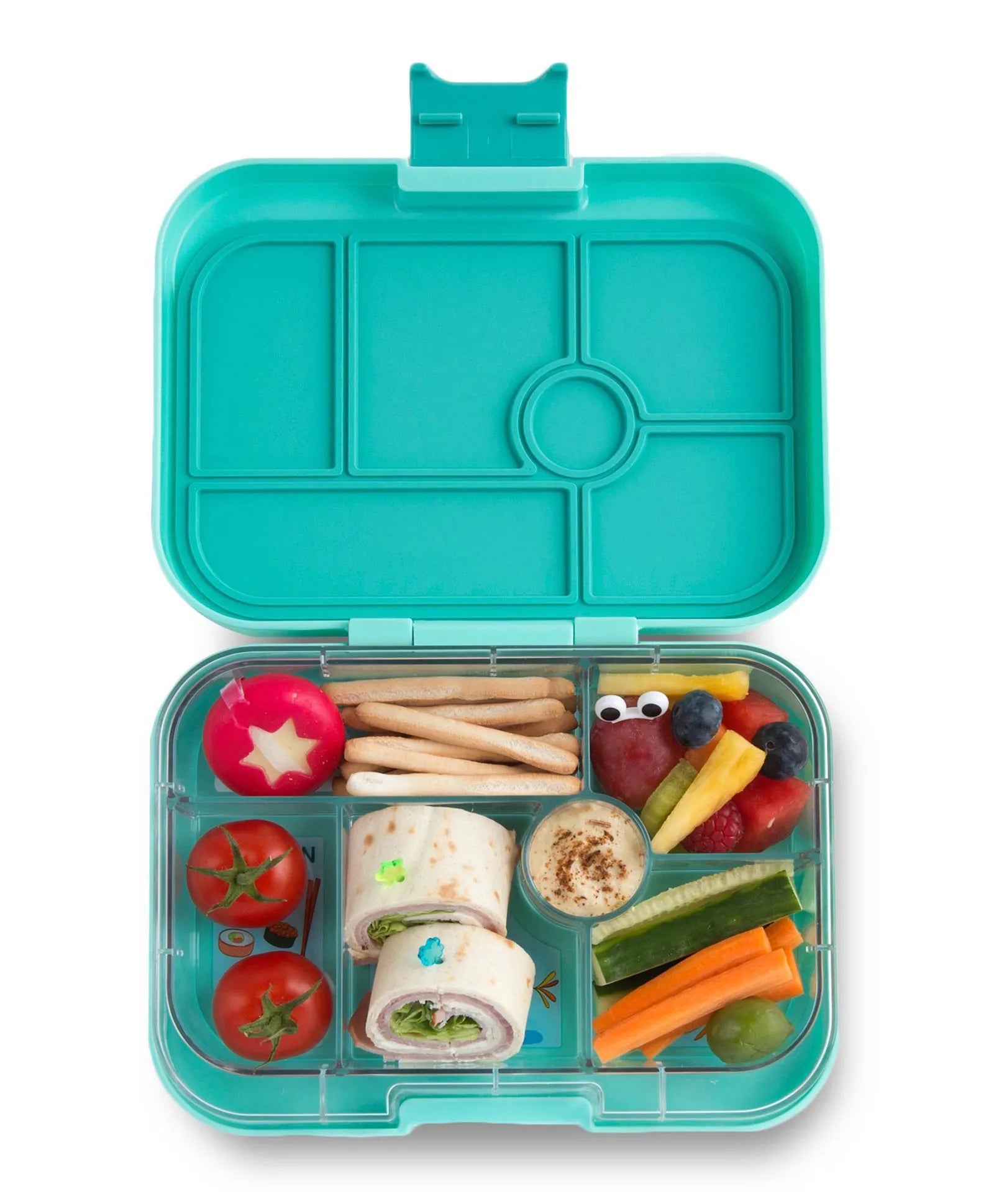 6-compartment Yumbox is perfect for young children (toddlers-age 8). It offers variety and promotes healthy eating habits. Yumbox is perfect for picky eaters. Pack small portions of your child's favorite foods, or bite size pieces of sandwiches. Its compact size and illustrated tray makes every lunch an adventure in good nutrition.