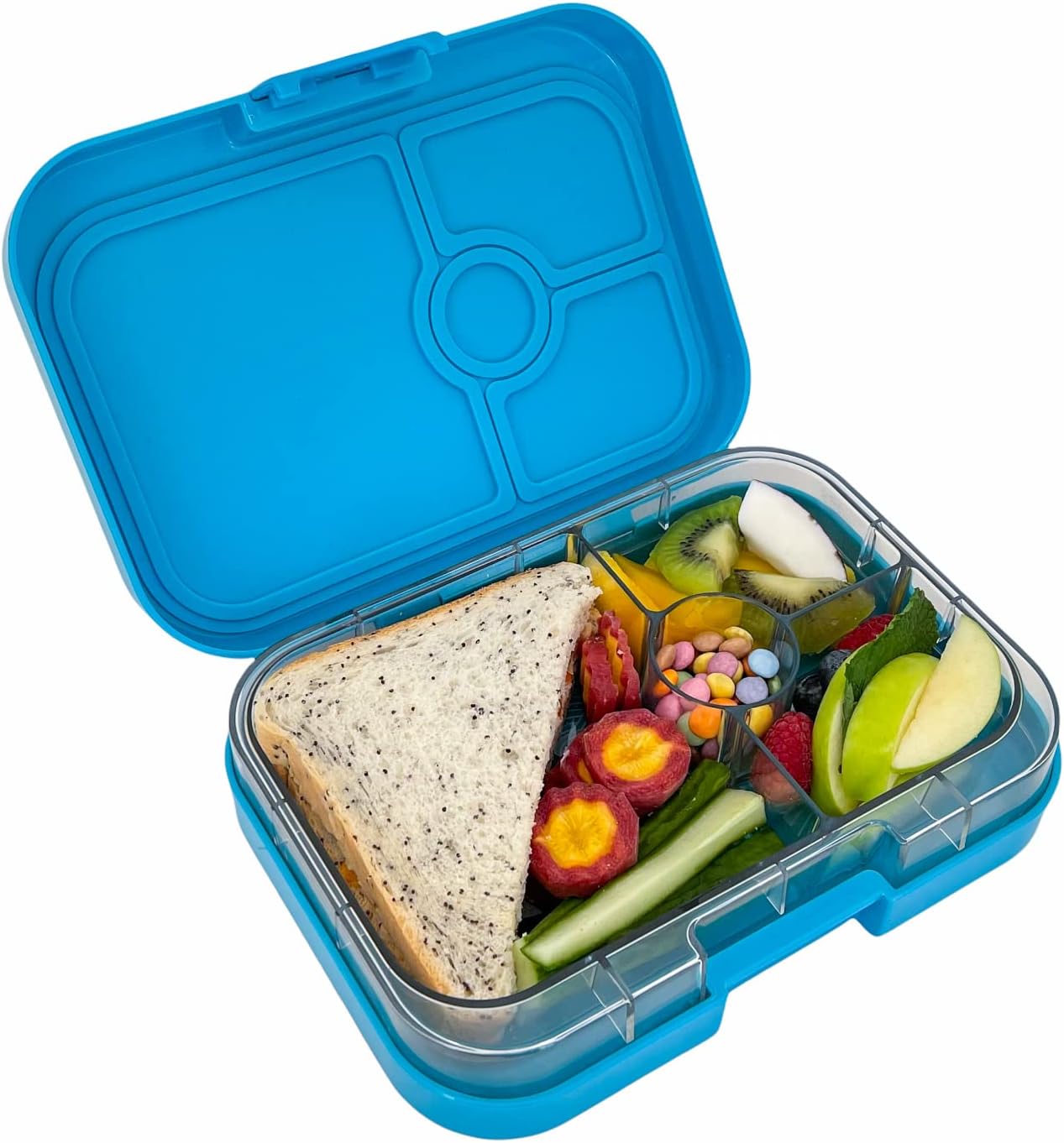 • PRACTICAL DESIGN: Yumbox Panino is designed to make your packed lunches easy and delicious. One silicone lined lid design makes it leakproof, so you can pack dips (not water) next to crackers with no worries. One easy to open and close latch makes Yumbox a perfect lunchbox even for toddlers.The removable compartmentalized tray is divided up in practical spaces, each sealed independently by the silicon seal (make sure not to overpack in order to seal!).