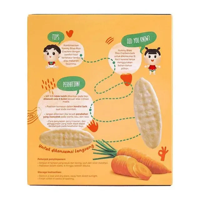Using selected organic rice and other organic ingredients, Yummy Bites Organic Rice Cracker is a healthy and delicious snack option for your baby's first solid food companion. Its melted texture in the mouth makes Yummy Bites Organic Rice Cracker easy to digest and can help stimulate the growth of your little one's teeth. Yummy Bites Organic Rice Cracker is good for your little one to consume because it is free from pesticide contamination and only uses selected natural ingredients. besides being nutritious, organic foods are believed to minimize the risk of allergies in children.